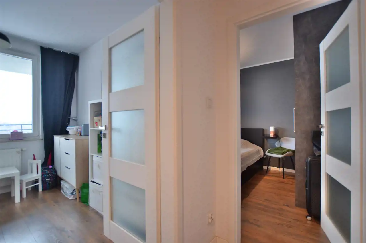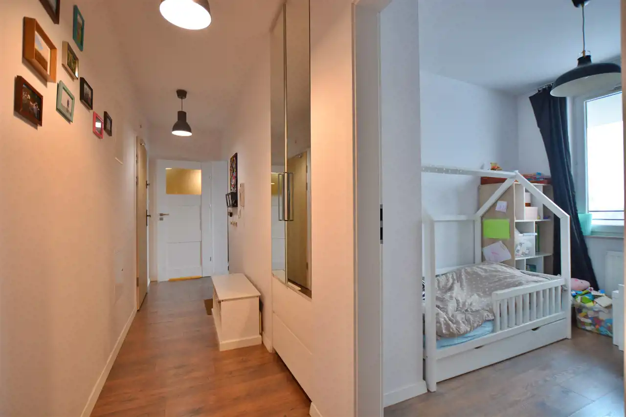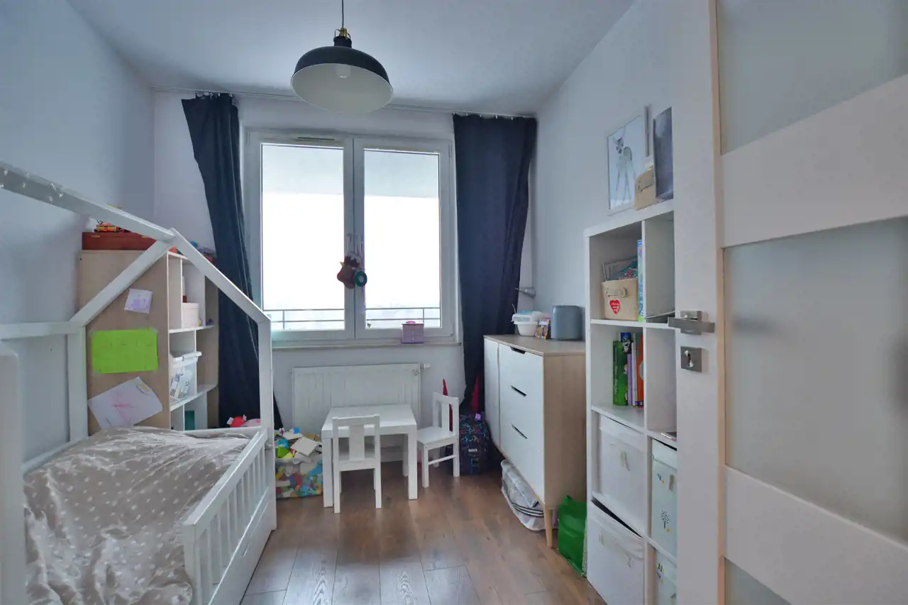 - mniejszego pokoju (ok. 8,2m2), który aktualnie jest pokojem dziecinnym