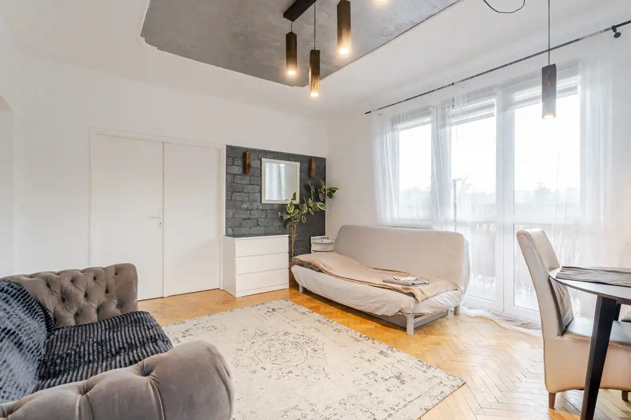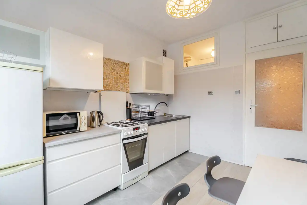 -Funkcjonalny układ pomieszczeń – oddzielna kuchnia i dwa niezależne pokoje.
