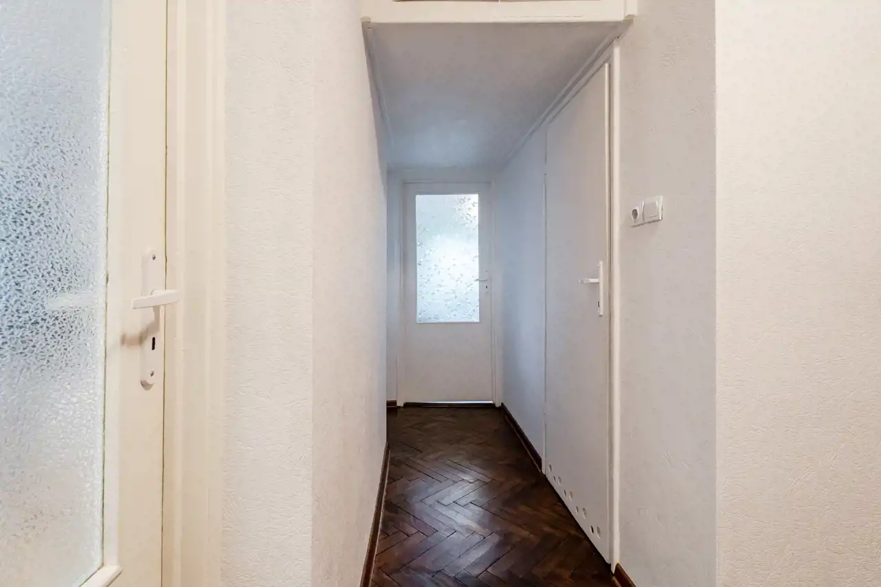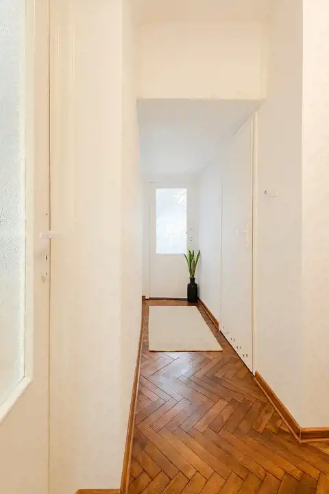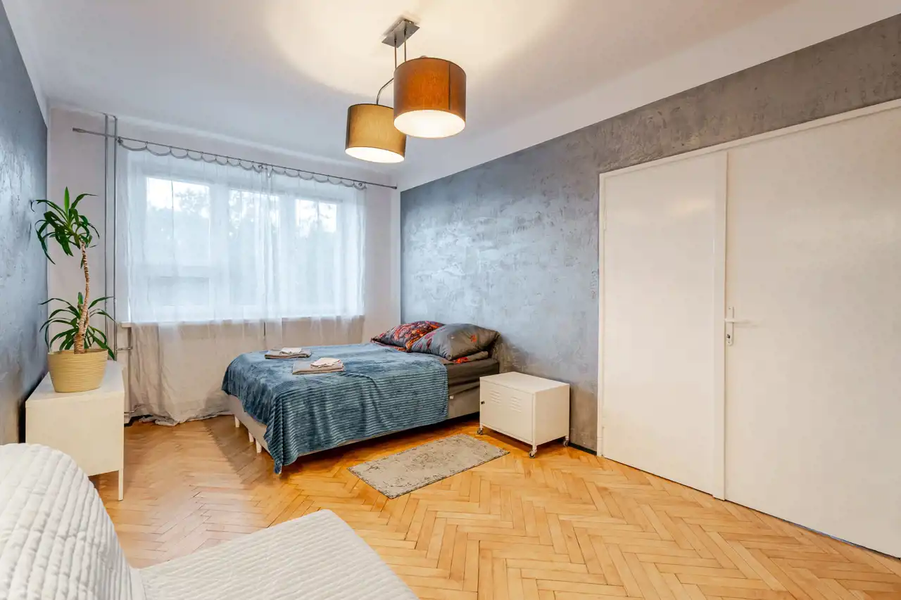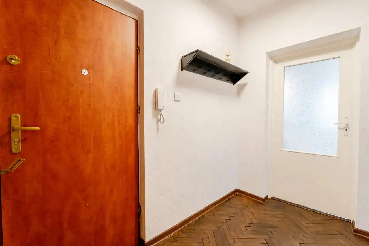 W mieszkaniu zachowany został oryginalny parkiet drewniany w pokojach i przedpokoju – do odświeżenia lub renowacji.