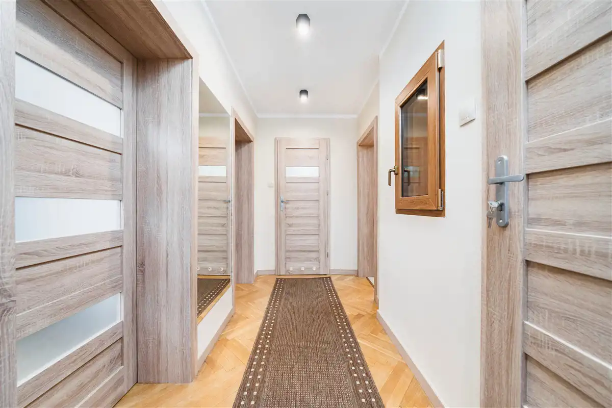 Dzięki przemyślanemu układowi pomieszczeń mieszkanie jest funkcjonalne i zapewnia komfort zarówno dla rodziny, jak i osób pracujących zdalnie.