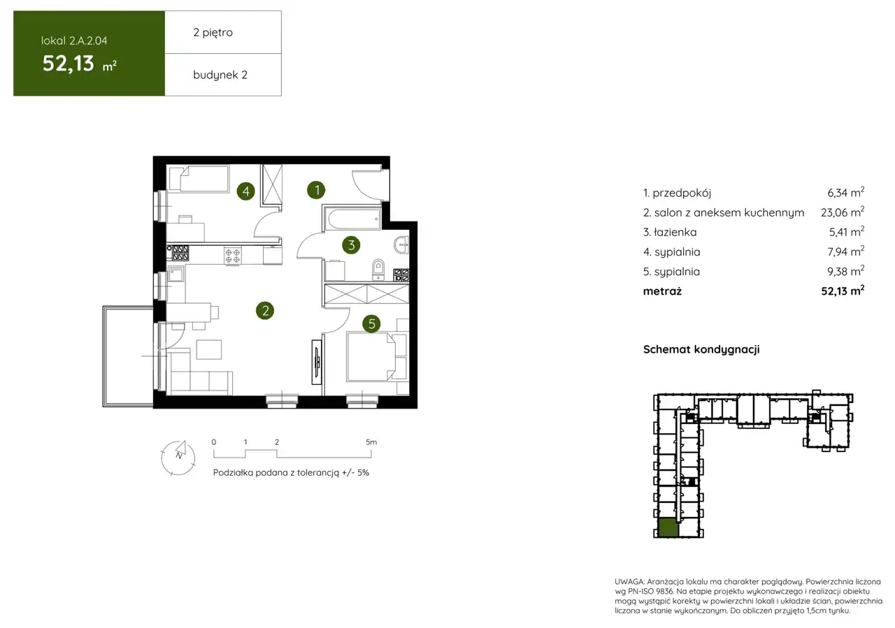 - Charakterystyka mieszkania 52.13 m2, 3 pokoje