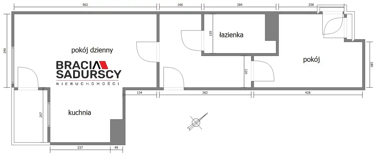 Mieszkanie składa się z: pokoju z aneksem kuchenny, drugiego pokoju, łazienki z wc , przedpokoju oraz dwóch balkonów. Wyjścia na balkony z każdego pokoju.