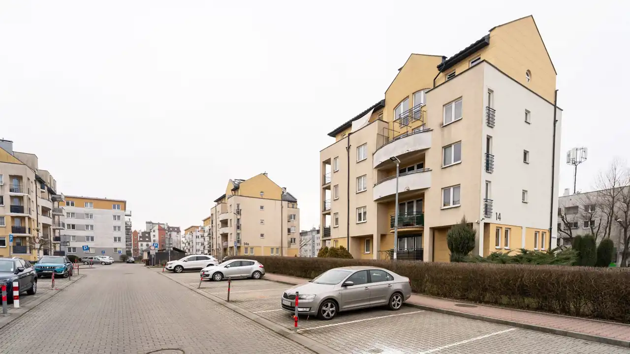 Miejsca postojowe ogólnodostępne przed budynkiem dla mieszkańców. Zgodnie z podziałem i decyzją wspólnoty, przynależą dwa do tego mieszkania.