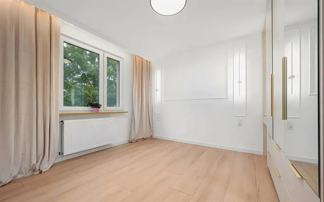Łazienka i kuchnia w pełni umeblowane i wyposażone, natomiast pokoje wymagją domeblowania.