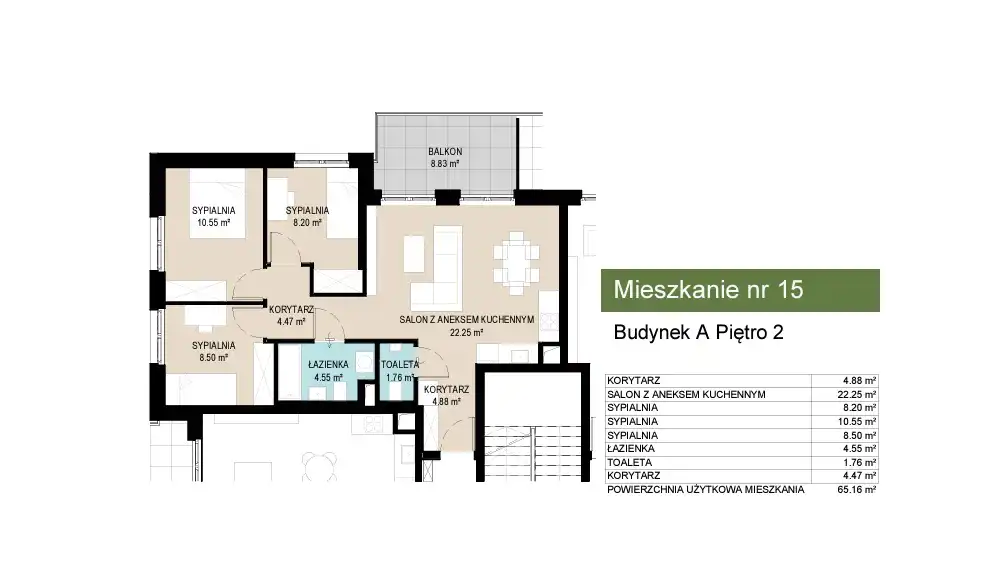 - Charakterystyka mieszkania 65.16 m2, 4 pokoje