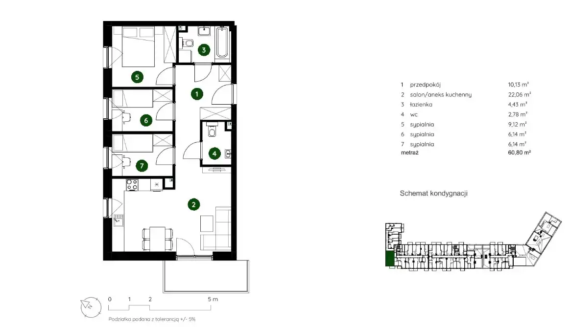- Charakterystyka mieszkania 60.8 m2, 4 pokoje