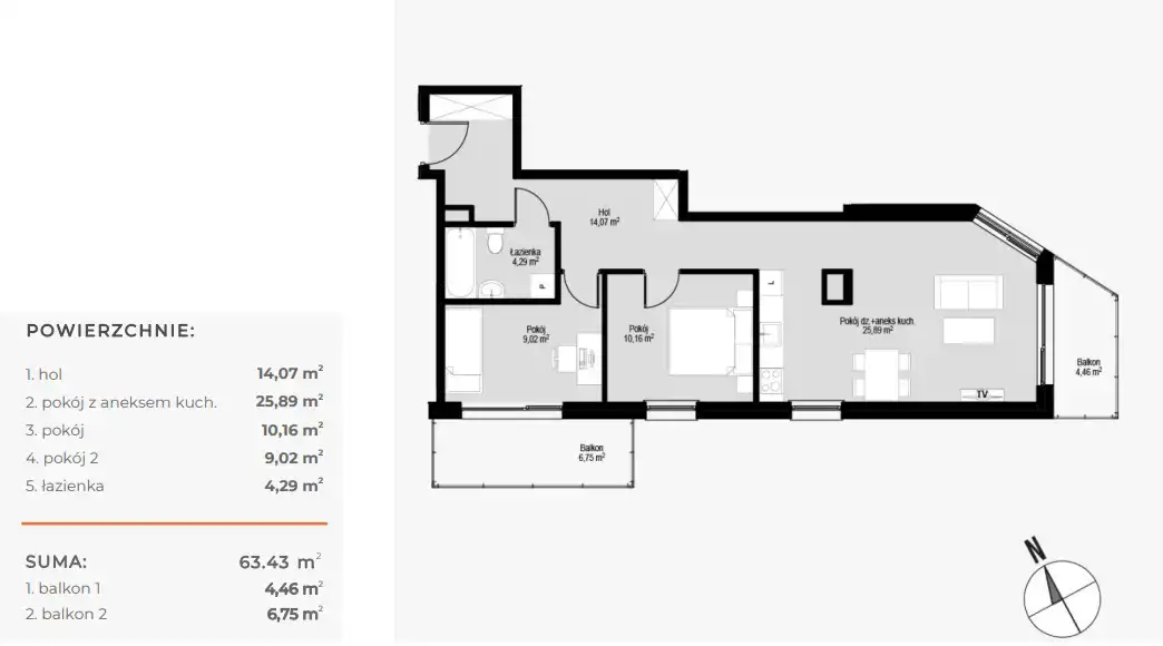 - Charakterystyka mieszkania 64 m2, 3 pokoje