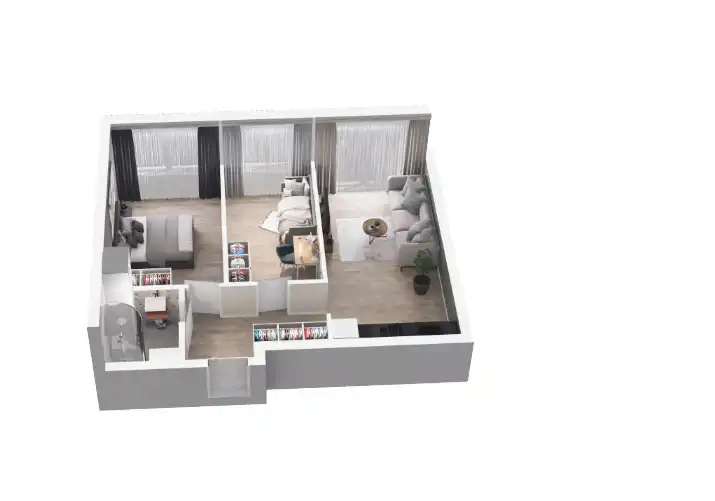 Mieszkanie składające się z salonu z aneksem kuchennym, dwóch sypialni , przedpokoju, łazienki oraz balkonu