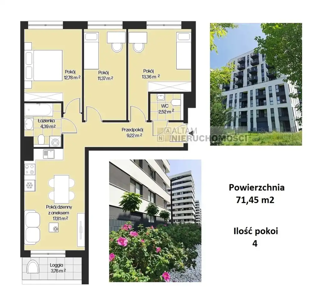 - Charakterystyka mieszkania 71.45 m2, 4 pokoje