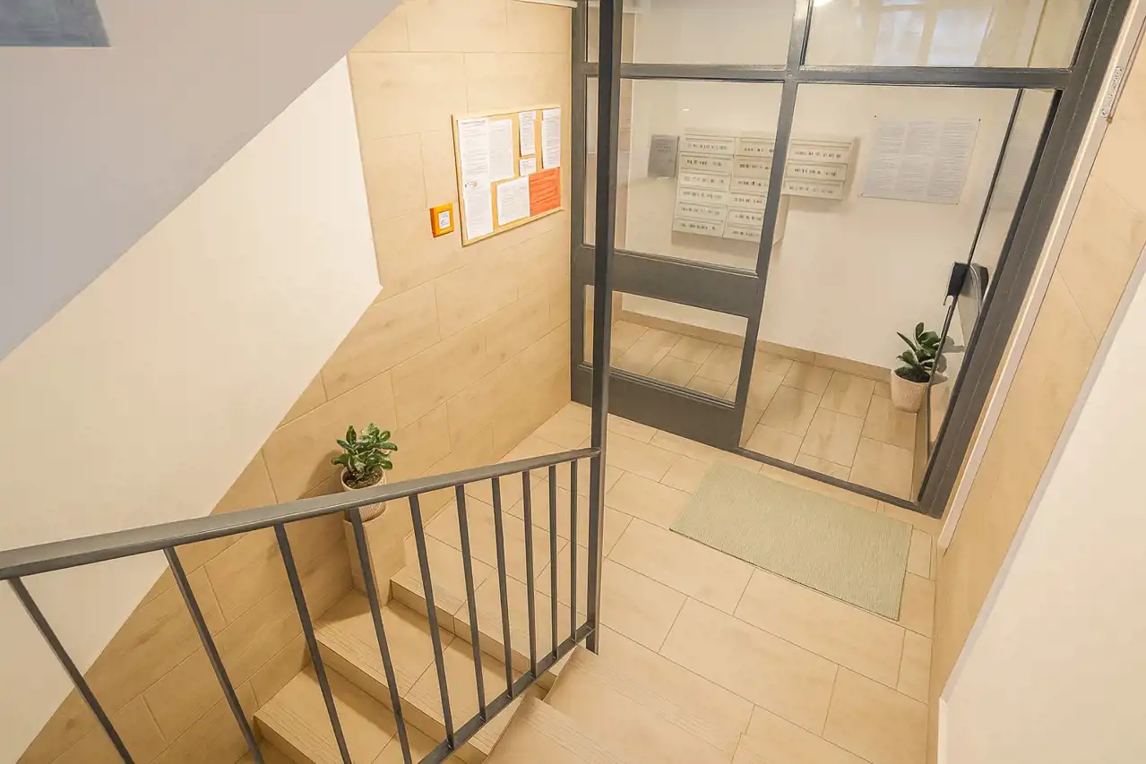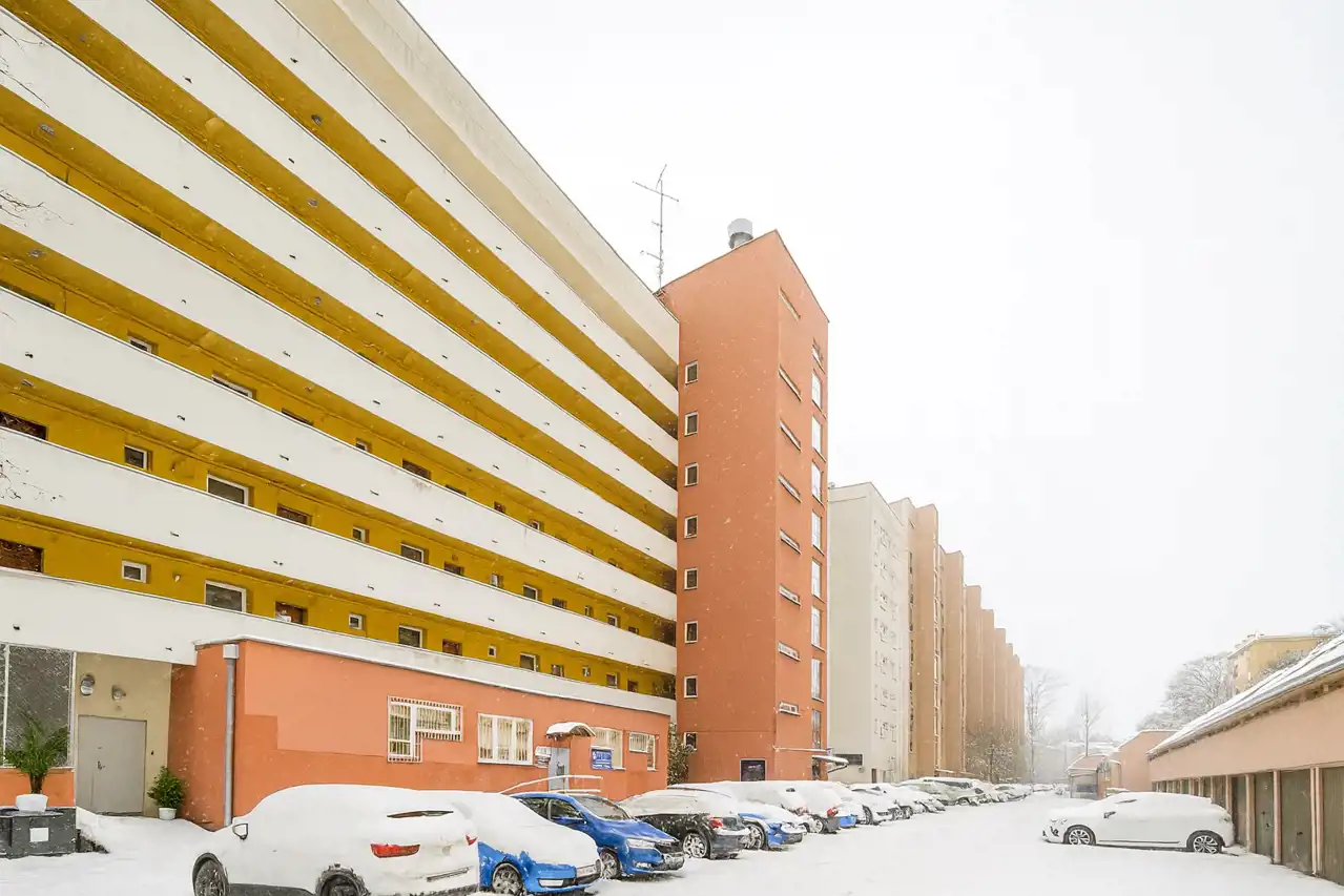 Mieszkanie położone jest w kultowym bloku przy ul. Nawojki 4 w Krakowie – części nagradzanego kompleksu Nawojki 4–6, zaprojektowanego przez Marię i Jerzego Chronowskich i uhonorowanego tytułem „Mister Krakowa 1976”. To miejsce z historią i charakterem, które do dziś wyróżnia się funkcjonalną architekturą oraz przemyślanym układem przestrzeni.
