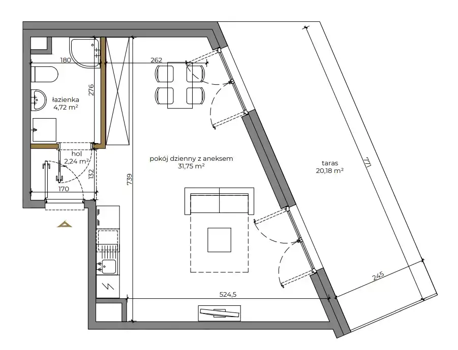- Charakterystyka mieszkania 38.71 m2, 2 pokoje