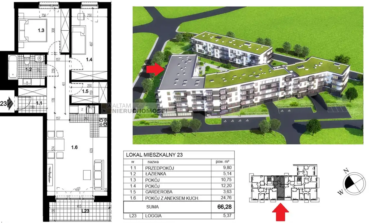 - Charakterystyka mieszkania 66.28 m2, 3 pokoje