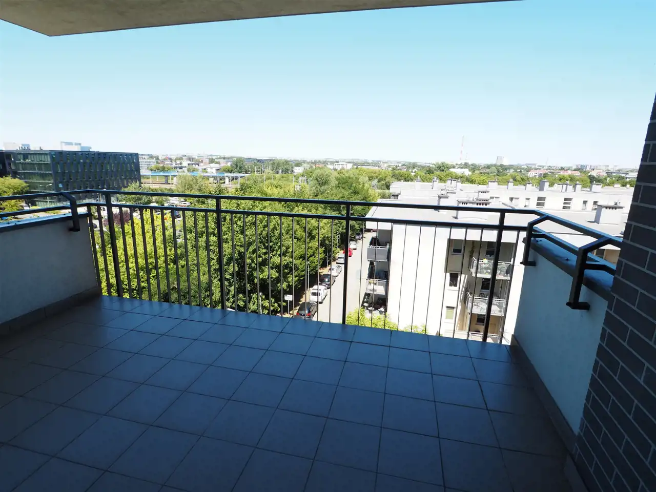 Układ to salon z aneksem kuchennym, sypialnia, łazienka , przedpokój oraz duży balkon (12m2).