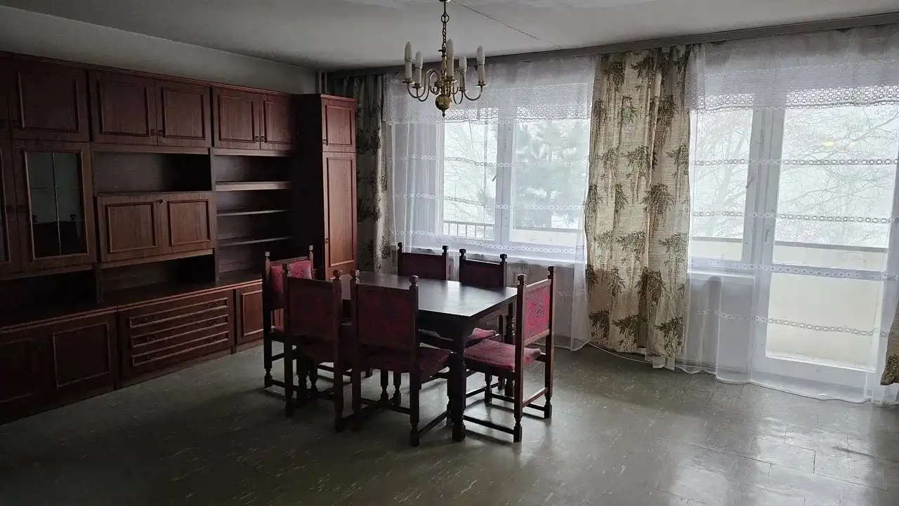 Na obecny układ składa się 5 osobnych pokoi, łazienka, osobna toaleta oraz przedpokój. Dodatkowo przynależy balkon o powierzchni 6 mkw oraz piwnica o powierzchni 5 mkw.