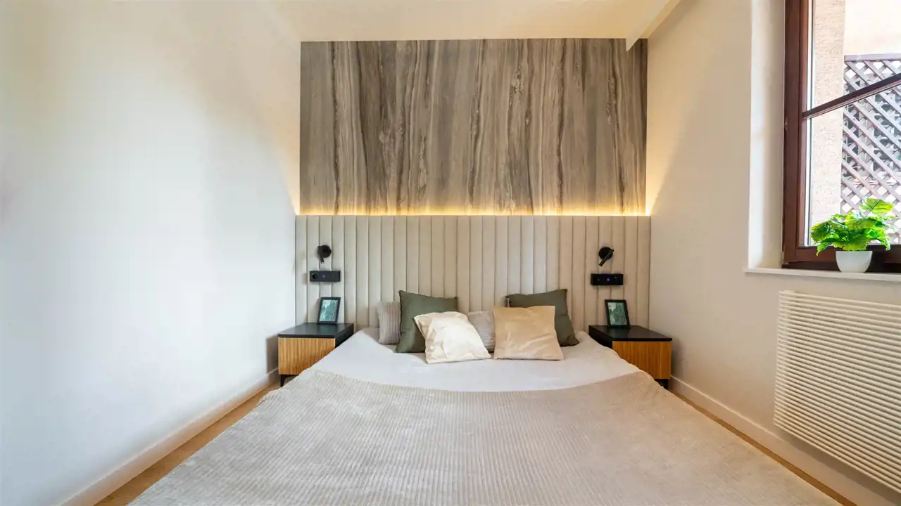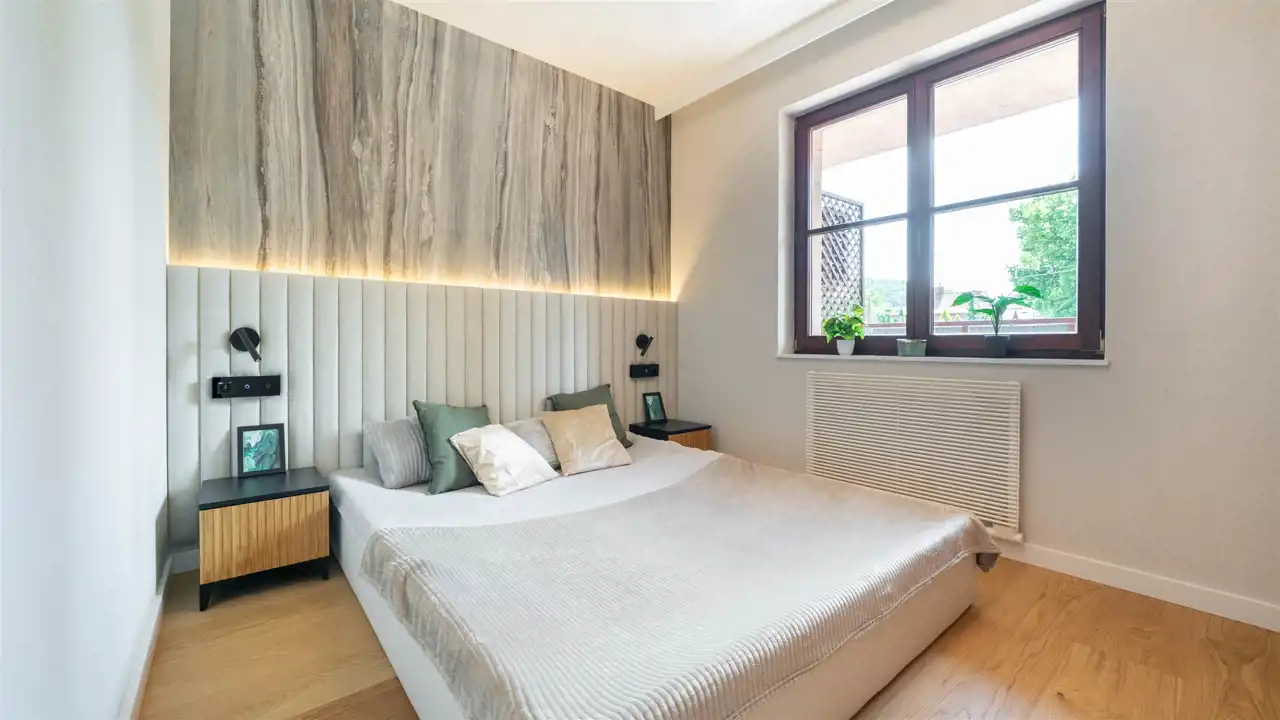 komfortowa sypialnia z miejscem do przechowywania,
