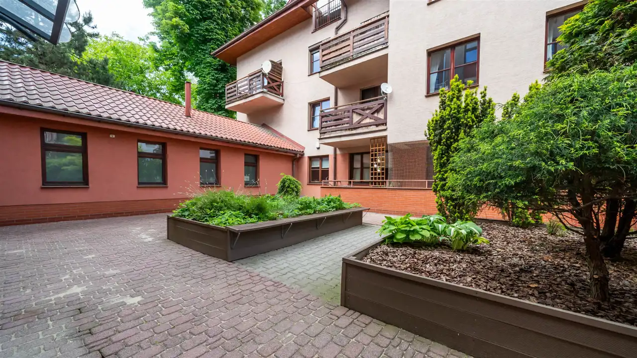 niska zabudowa i kameralna atmosfera budynku,