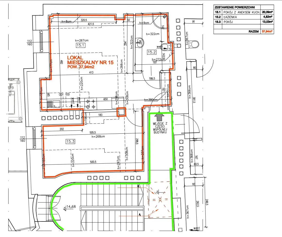 - Charakterystyka mieszkania 37.94 m2, 2 pokoje