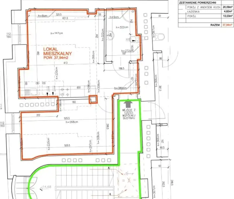 - Charakterystyka mieszkania 37.94 m2, 2 pokoje