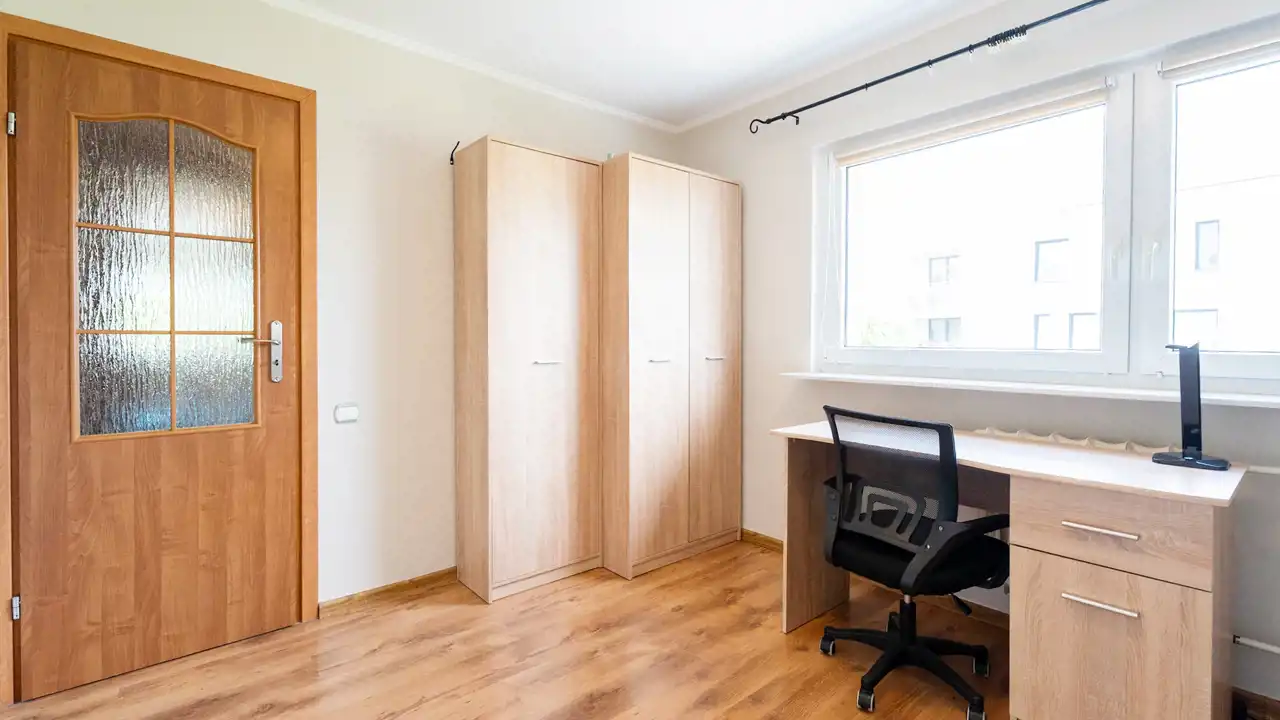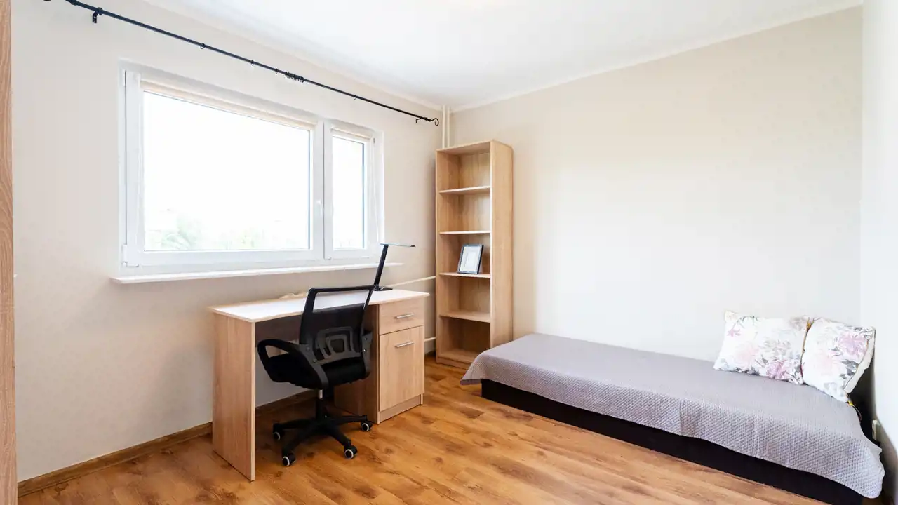 Dwie ustawne sypialnie (14,2 m² i 9,7 m²) – świetnie sprawdzą się jako pokoje dziecięce, sypialnia lub domowe biuro,