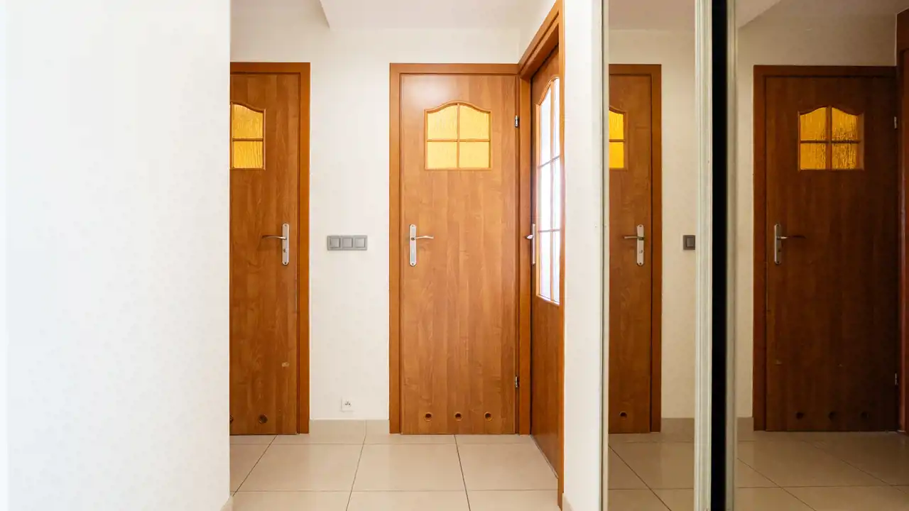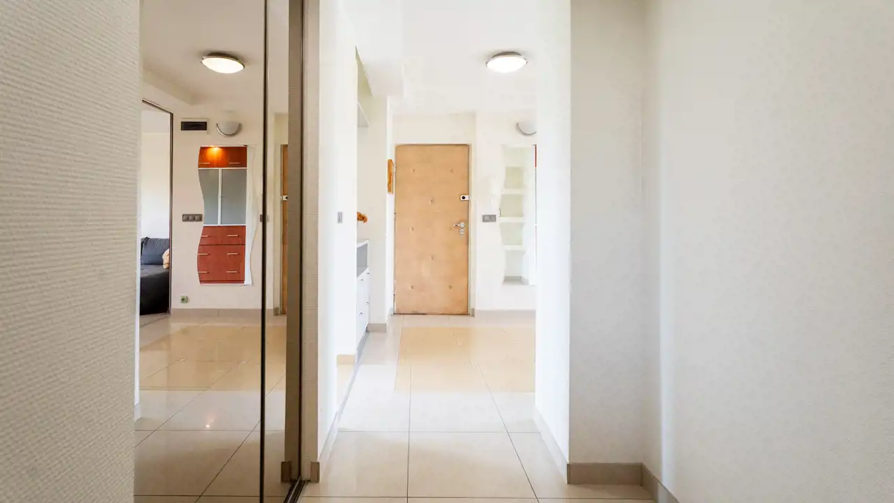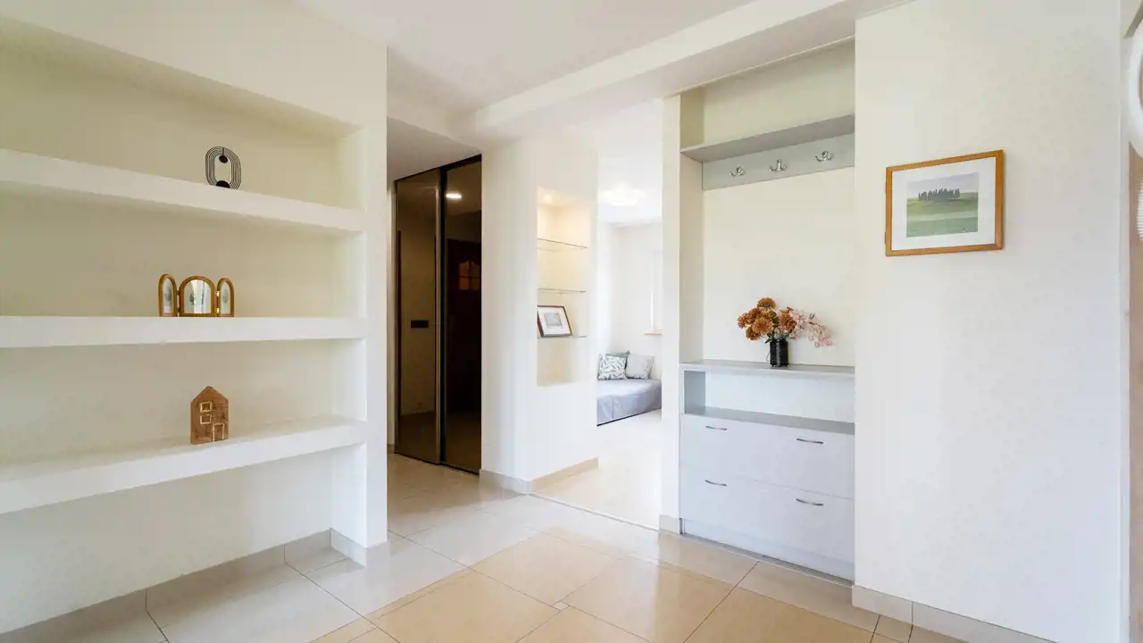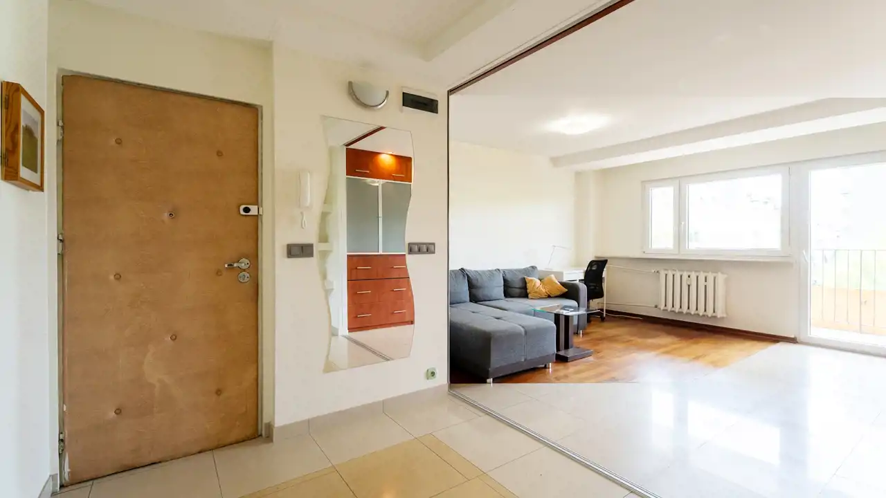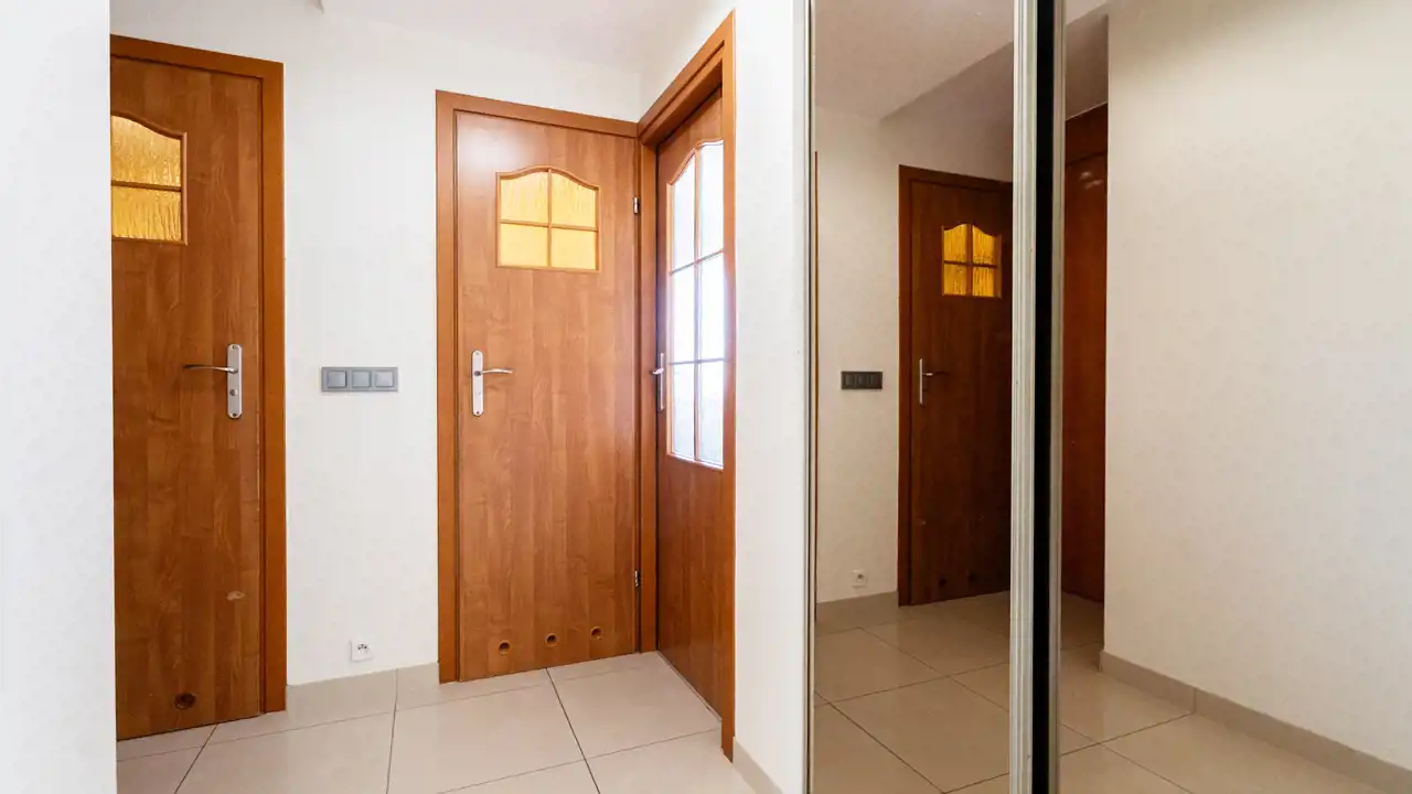 Przestronny przedpokój (13,2 m²) z szafami wnękowymi zapewnia dużo miejsca do przechowywania,