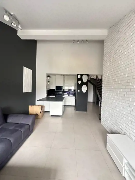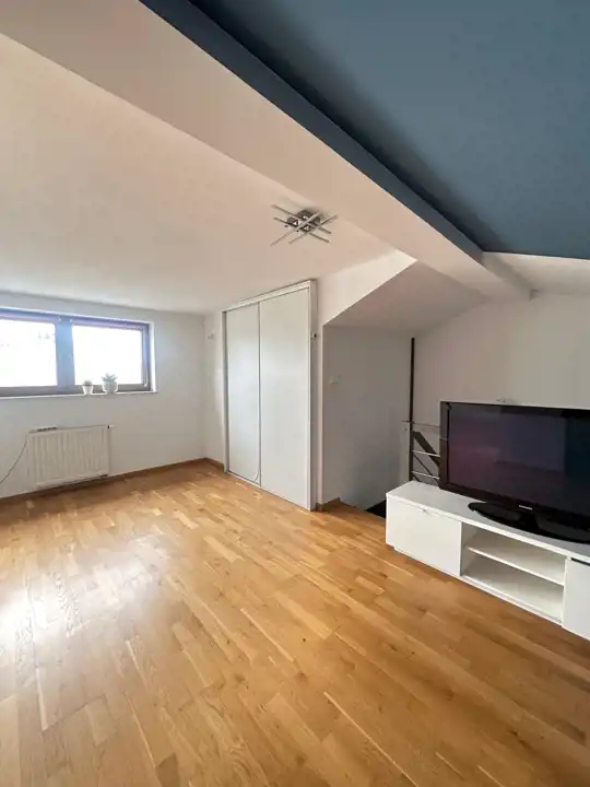 - salon z aneksem kuchennym, dwie sypialnie, łazienka z toaletą, przedpokój, na drugim poziomie pokój