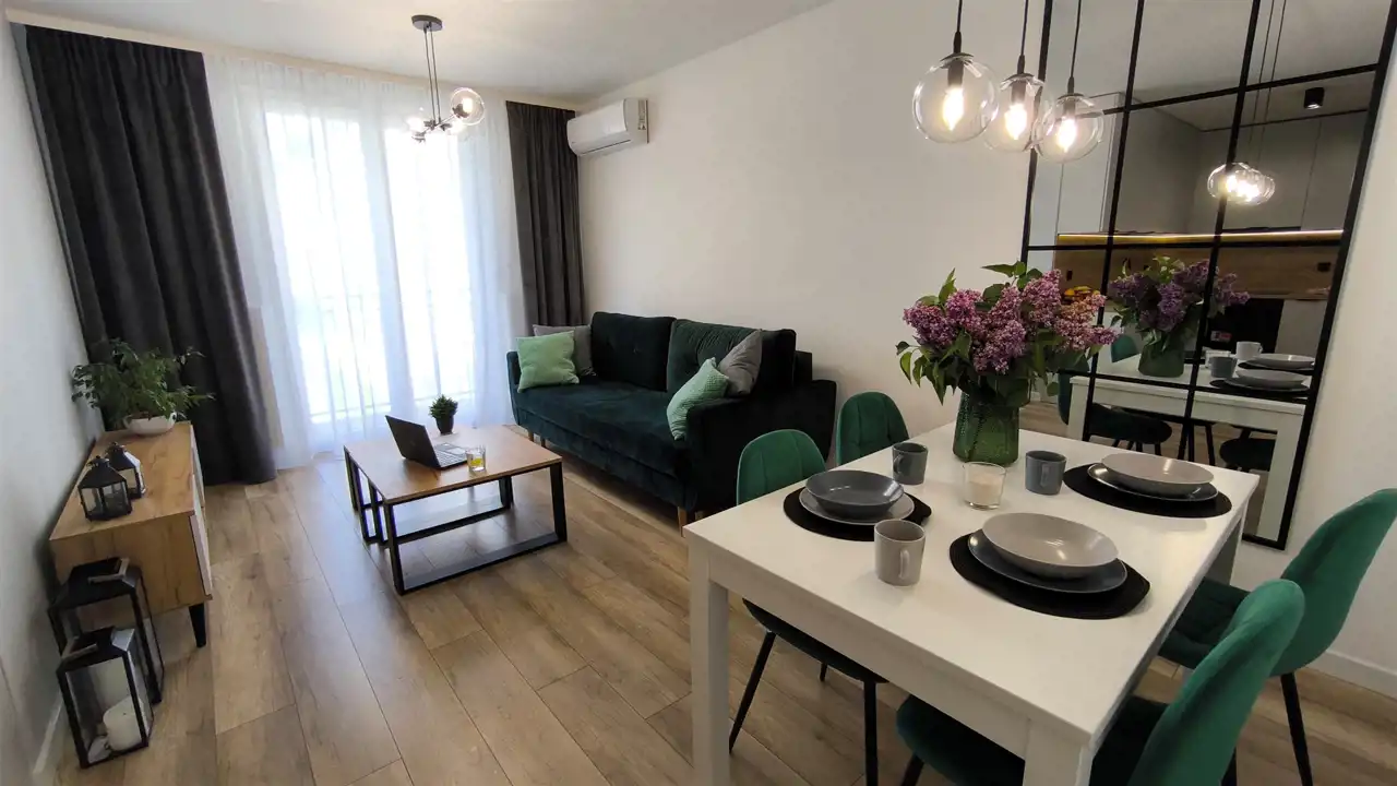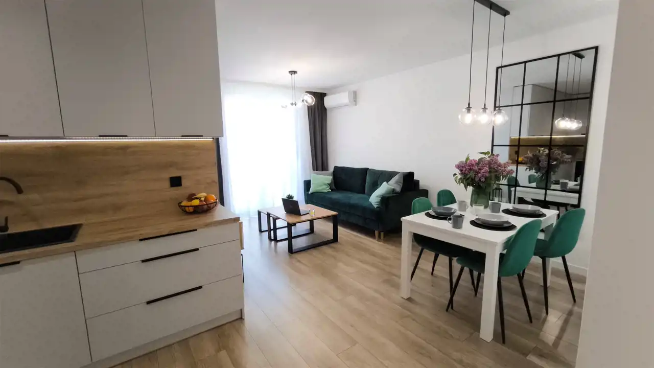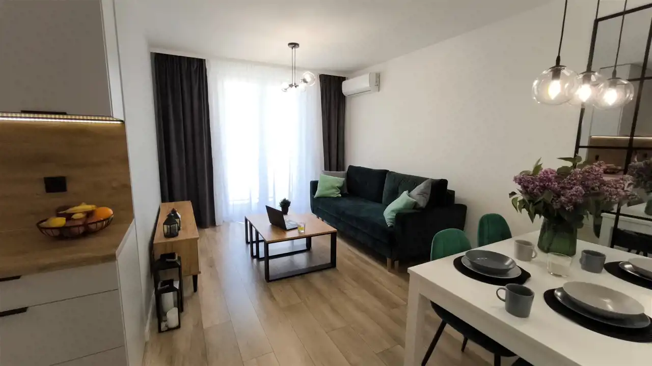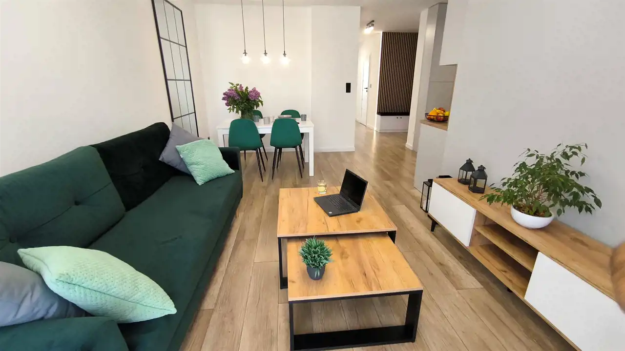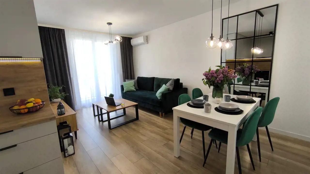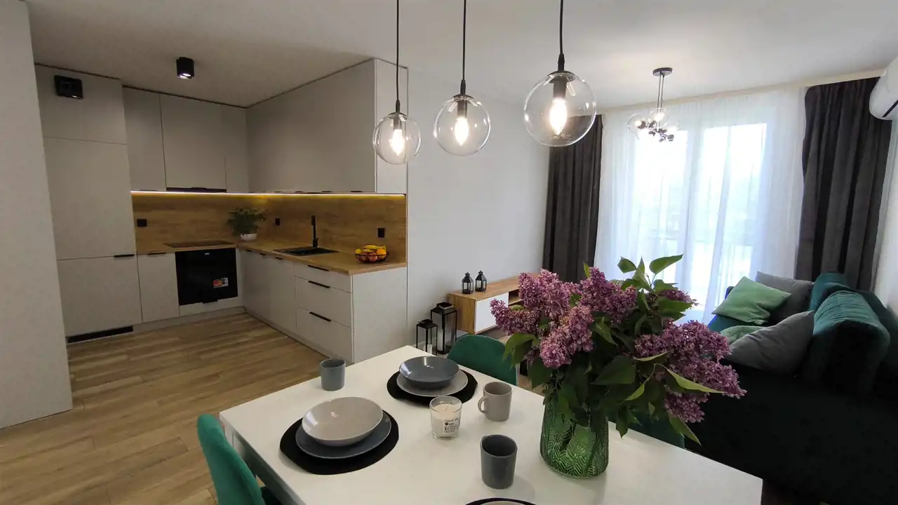 Mieszkanie wykończone w wysokim standardzie z najwyższej jakości materiałów w pełni umeblowane, nigdy niezamieszkałe, o powierzchni 62,62 m2 składa się z: