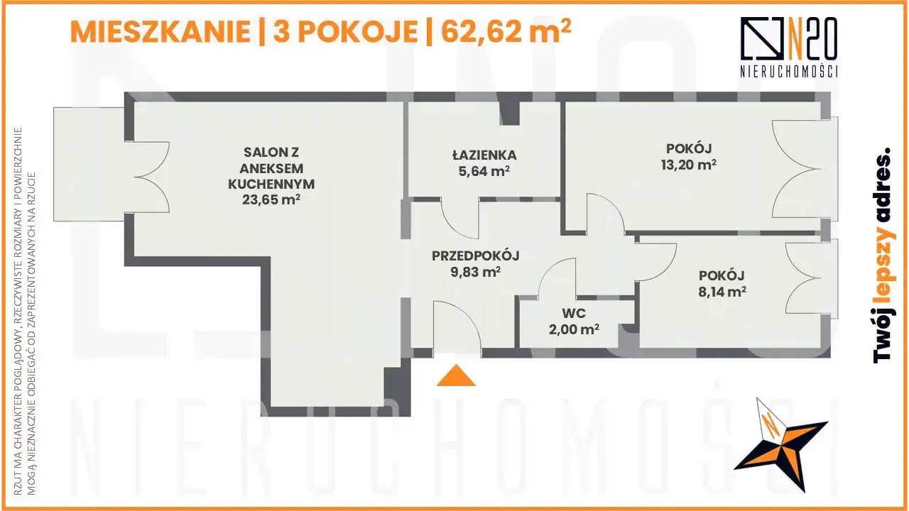 - Charakterystyka mieszkania 62.62 m2, 3 pokoje