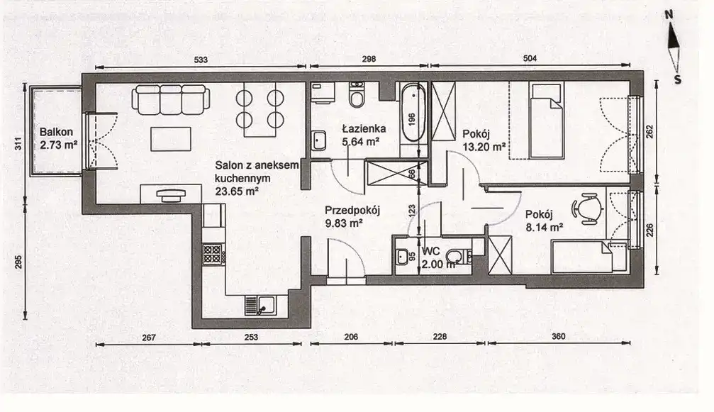 * do mieszkania przynależy balkon 2,73m2