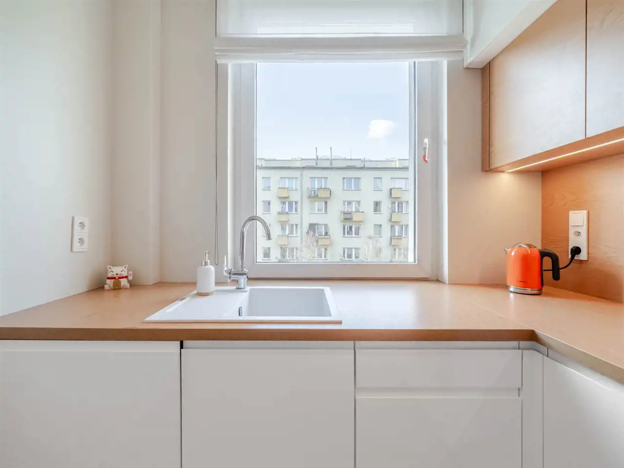- kuchnia z dużym, panoramicznym oknem