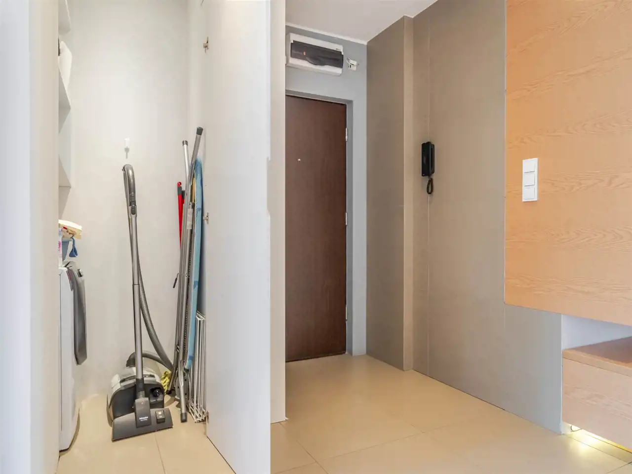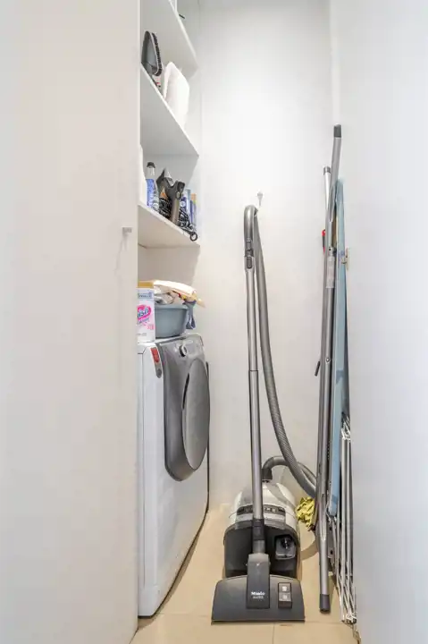- w osobnym pomieszczeniu jest pralnia, wyposażona w pralkę oraz szafki na chemię i detergenty a także miejsce na odkurzacz i akcesoria do sprzątania