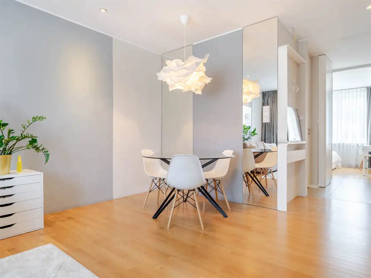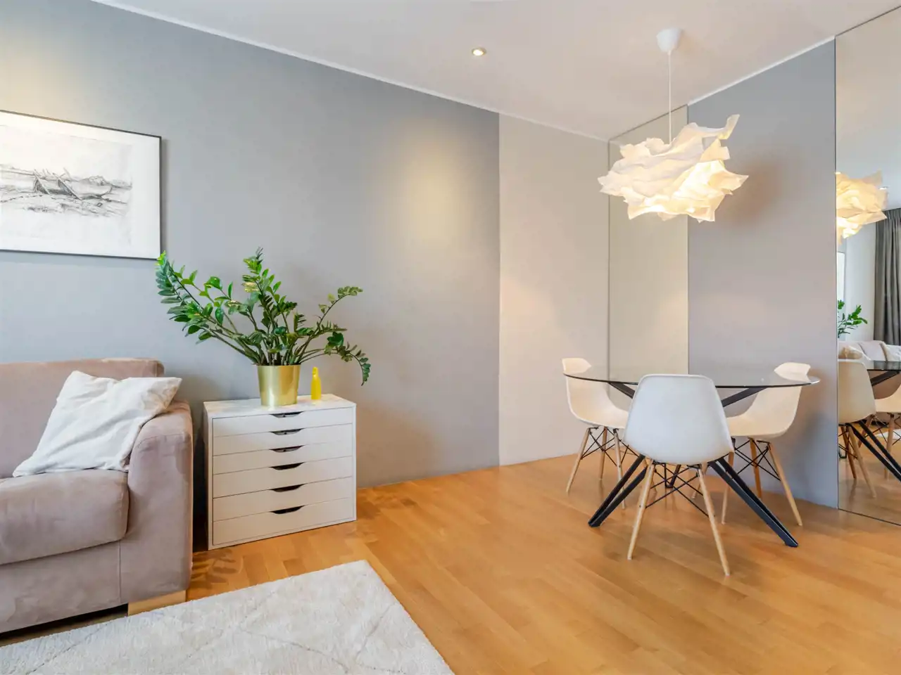 - na ścianach farba zmywalna, dzięki której bardzo łatwo utrzymać apartament w czystości