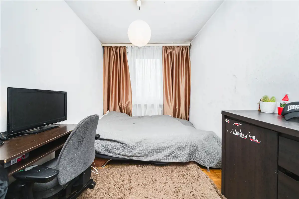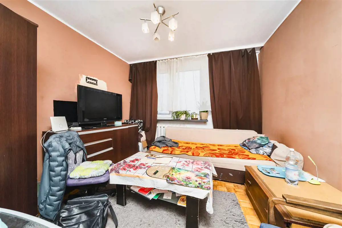 Na podłogach w największym pokoju panele, w pozostałych pokojach mozaika parkietowa, w pozostałych pomieszczeniach płytki. Okna częściowo PCV, częściowo stare drewniane, wychodzą na południowy zachód, północny zachód i północny wschód. Czynsz ok. 1100 zł. przy 2 osobach, dodatkowo pąd i gaz (tylko do kuchenki). Ogrzewanie i ciepła woda miejskie.