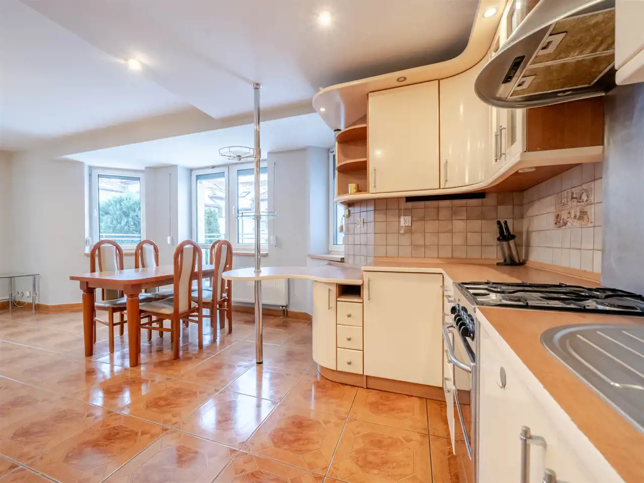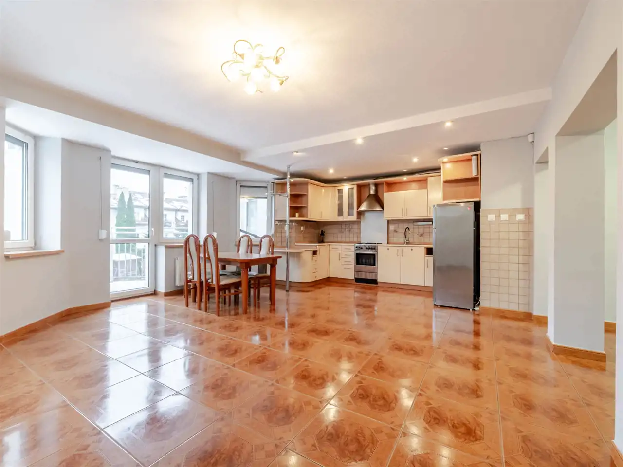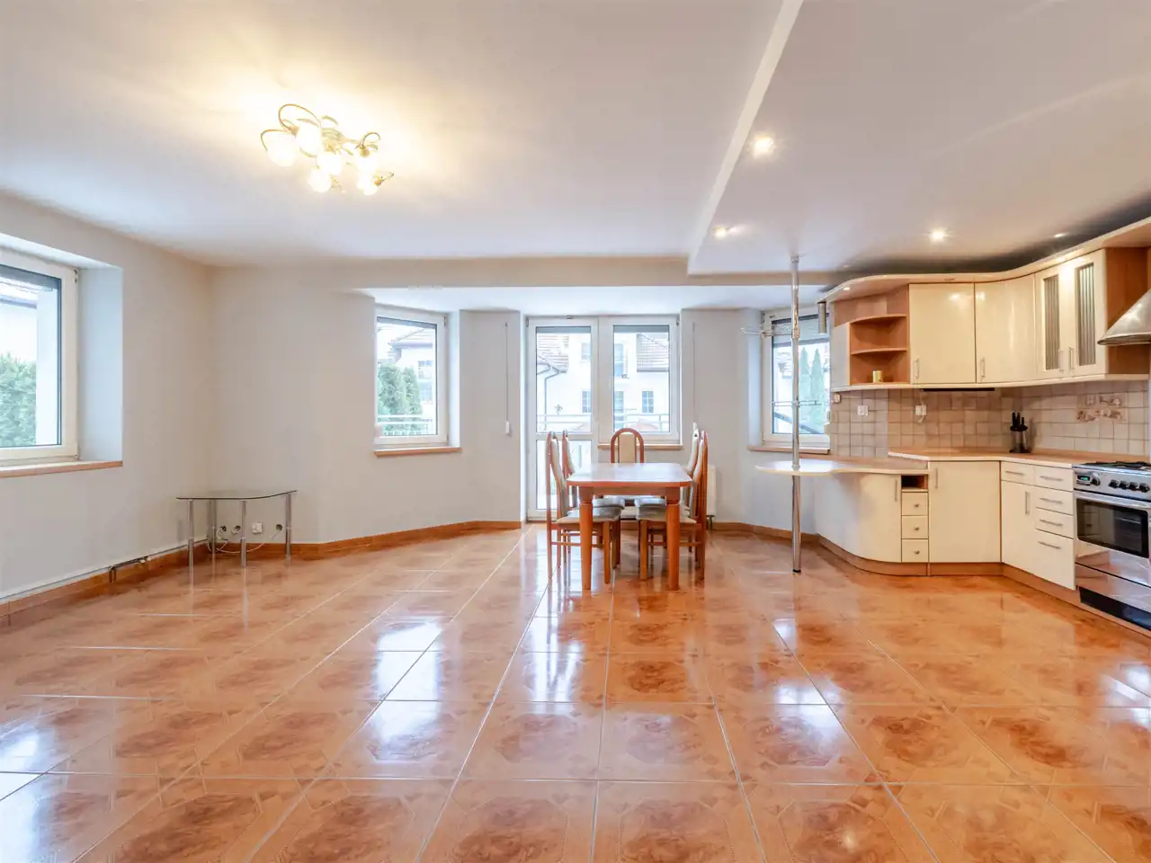 przestronnego salonu z jadalnią,