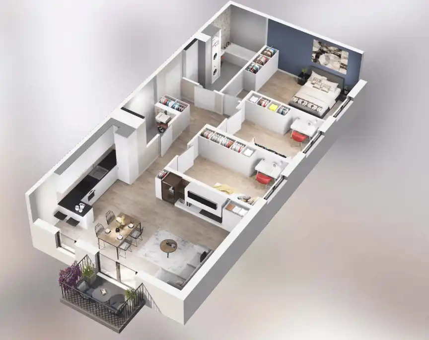 1, 2, 3 i 4-pokojowe mieszkania, o metrażach od 30,81 m² do 82,37 m², idealnie dopasowane do potrzeb singli, par, jak i rodzin.