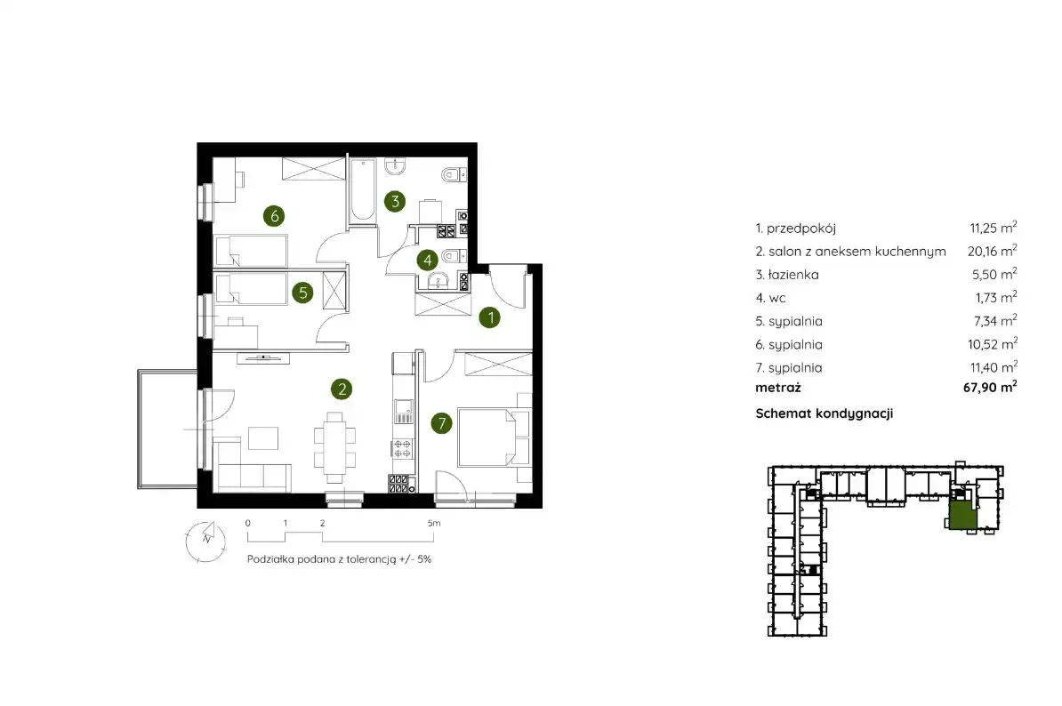 - Charakterystyka mieszkania 67.69 m2, 4 pokoje