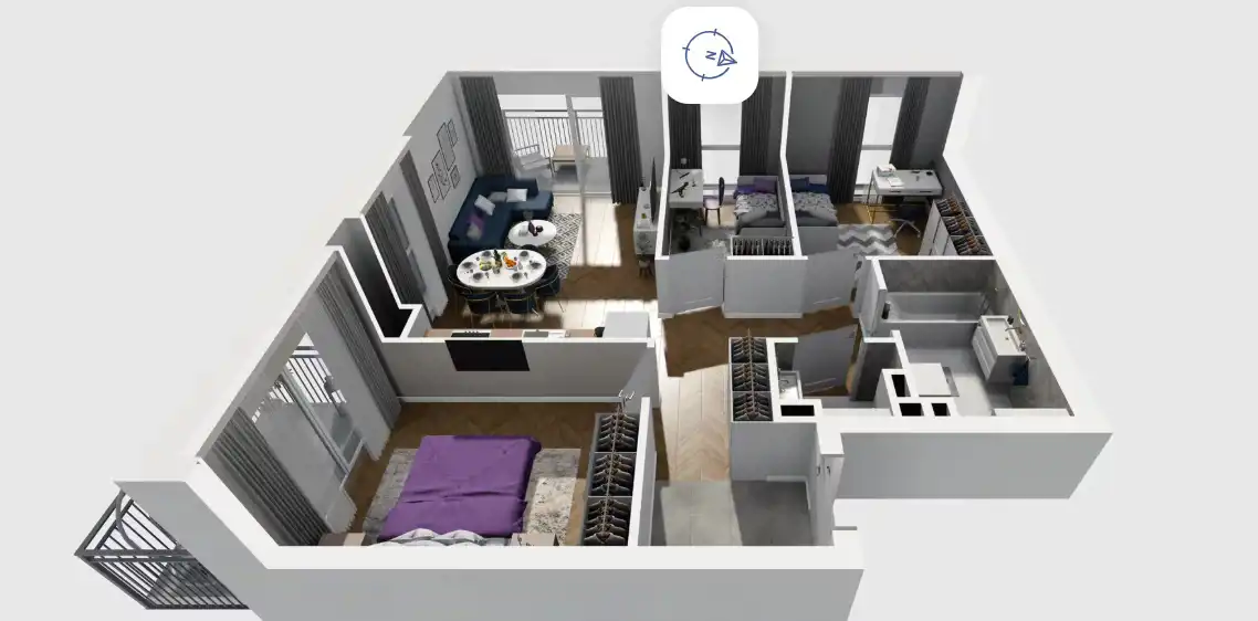 Mieszkanie składające się z salonu z aneksem kuchennym , trzech sypialni, przedpokoju, łazienki, oraz balkonu