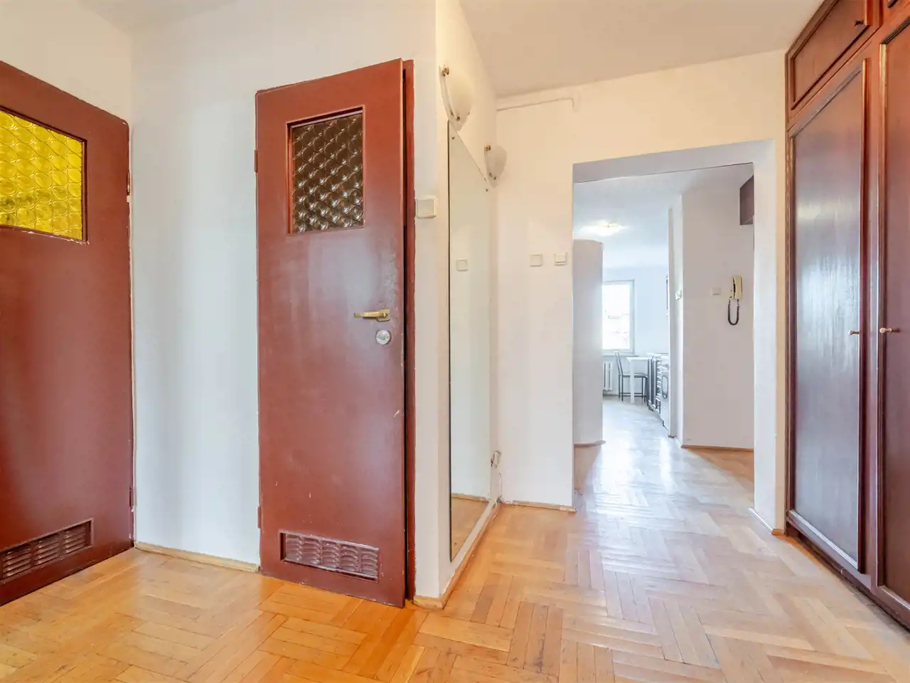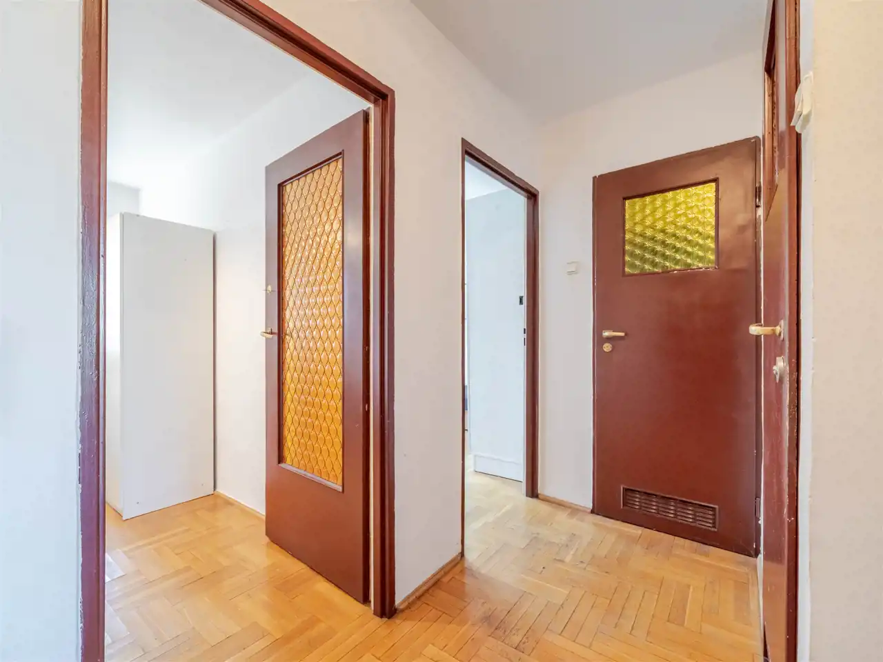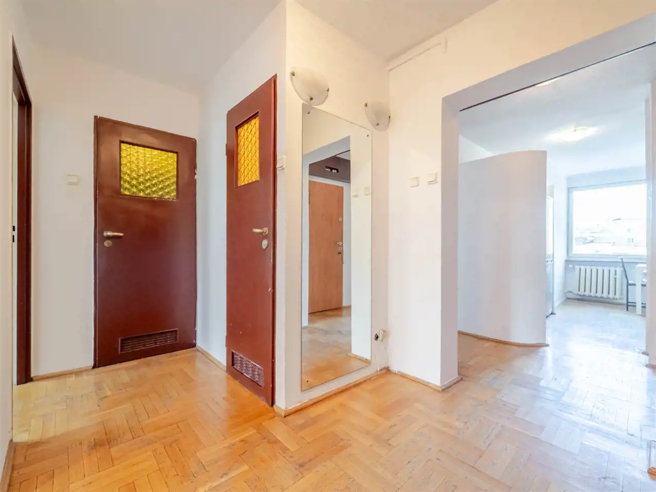 Na podłogach w pokojach, przedpokoju i kuchni parkiet, z łazience i wc płytki.