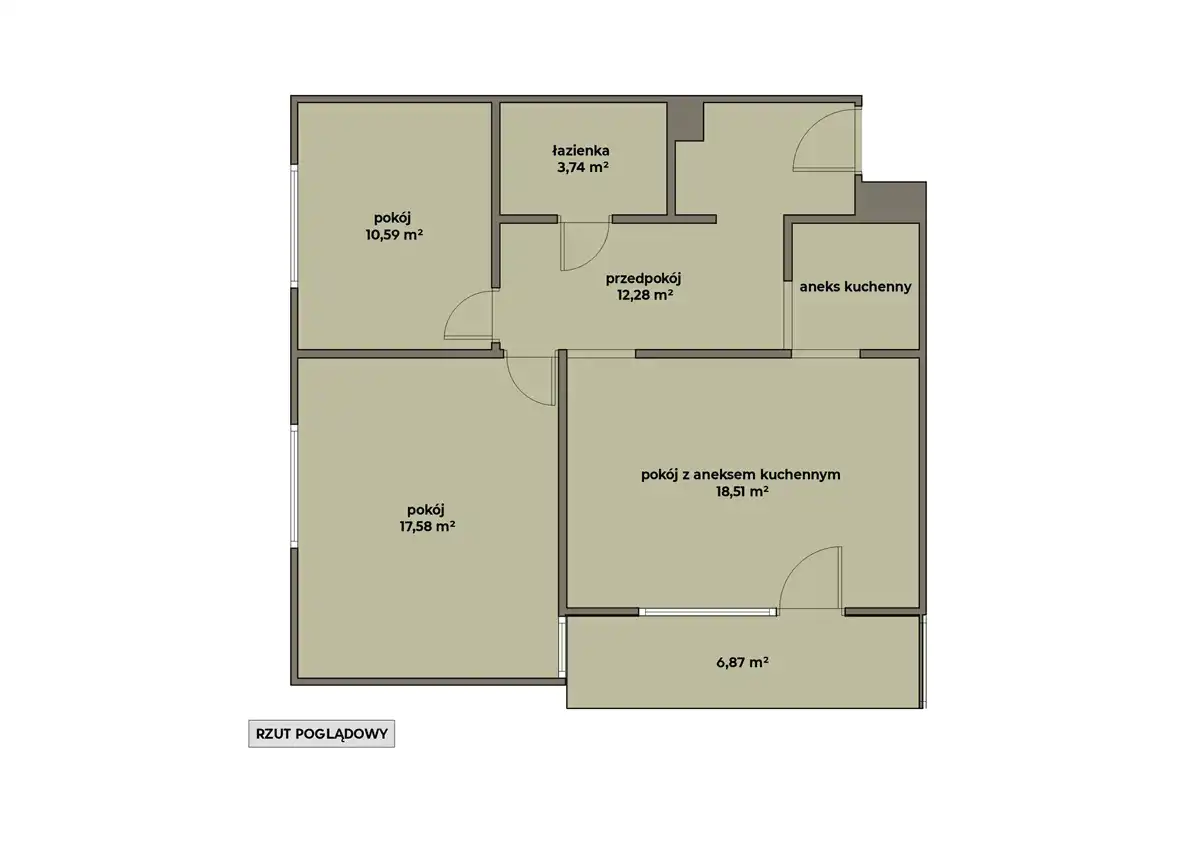 pokój z aneksem kuchennym – 18,51 m²