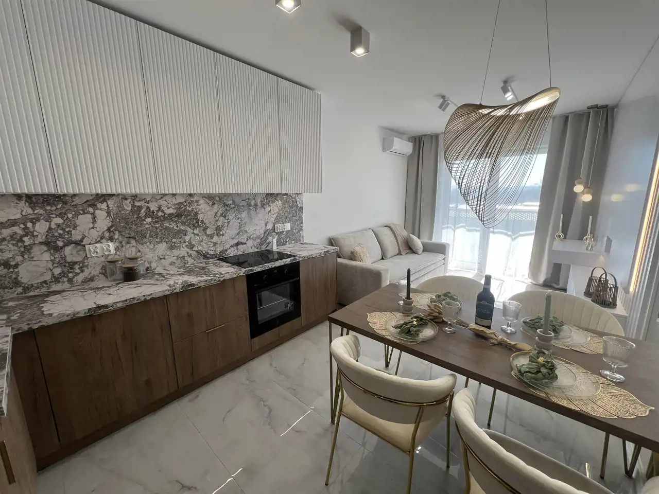 Mieszkanie nigdy niezamieszkałe, wykończone w standardzie premium, w pełni umeblowane i gotowe do wprowadzenia.