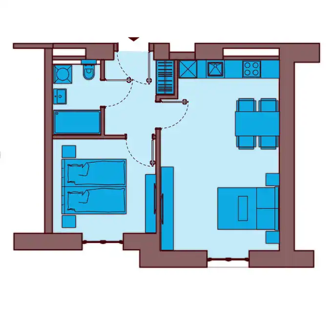 - Charakterystyka mieszkania 48.23 m2, 2 pokoje