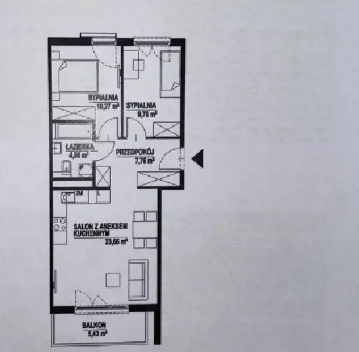 - Charakterystyka mieszkania 55.55 m2, 3 pokoje