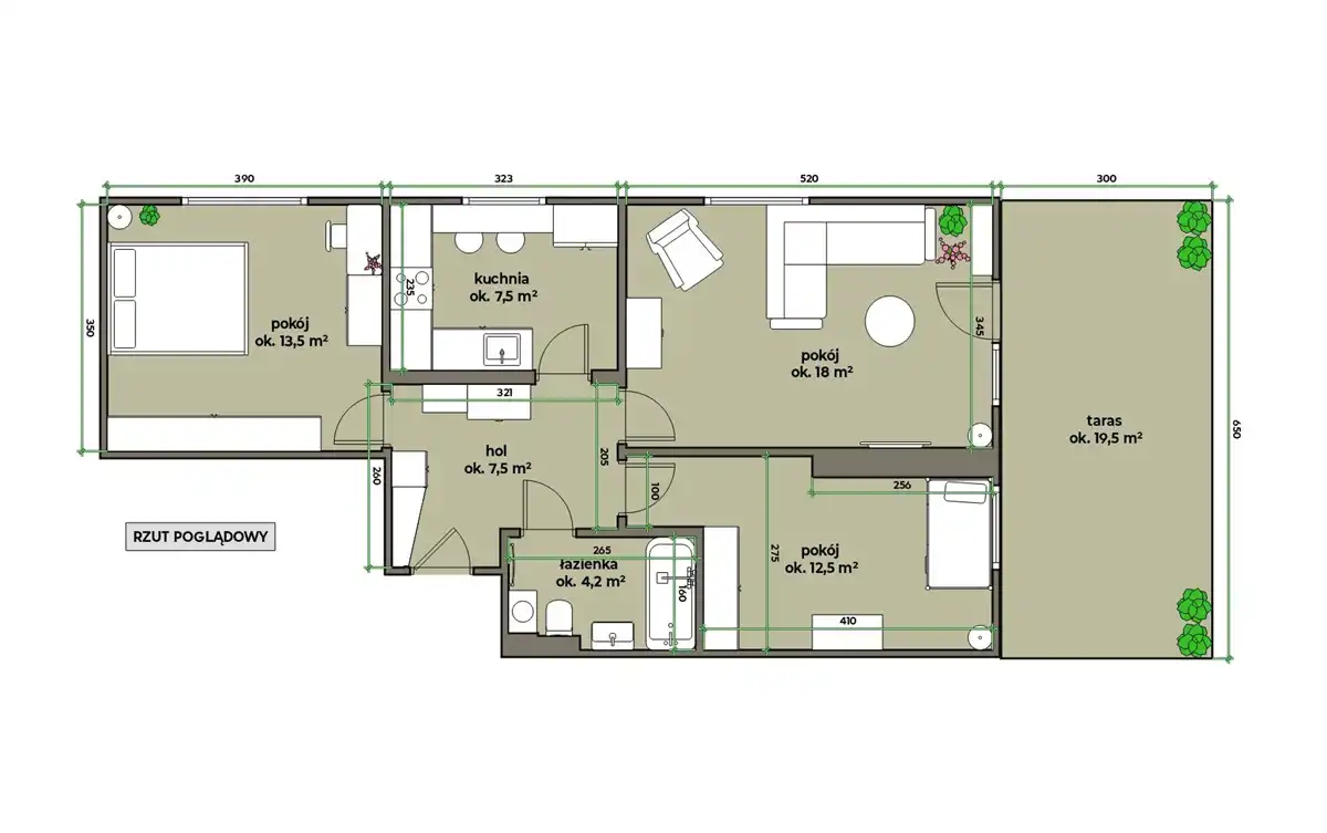 - Charakterystyka mieszkania 63.01 m2, 3 pokoje