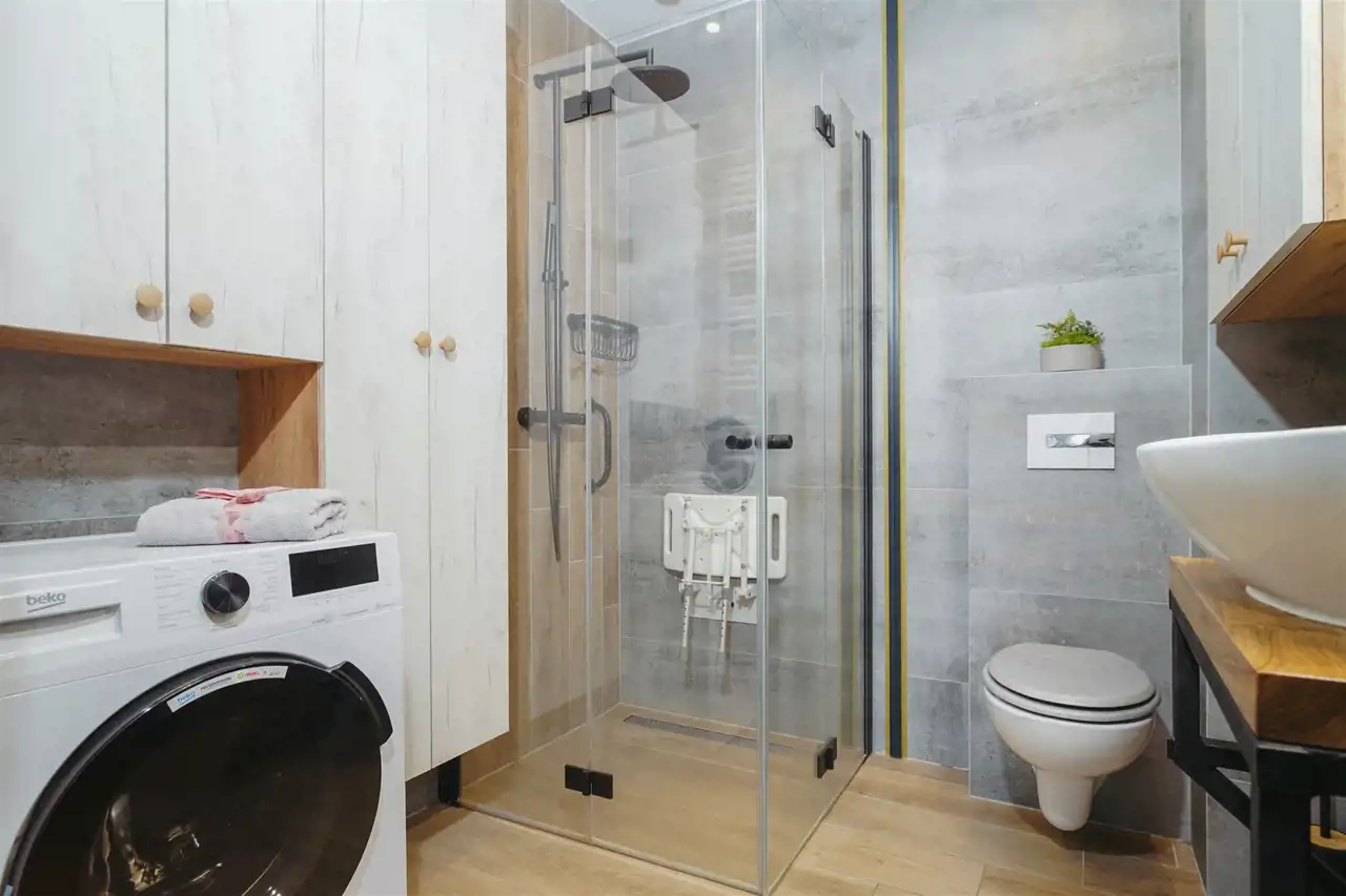 Mieszkanie wyróżnia też mnóstwo miejsca do przechowywania. Dodatkowo przynależy do niego bardzo duża komórka lokatorska (dodatkowo płatna 30 tys. zł), w której zmieszczą się rowery, czy niepotrzebne na co dzień sprzęty.