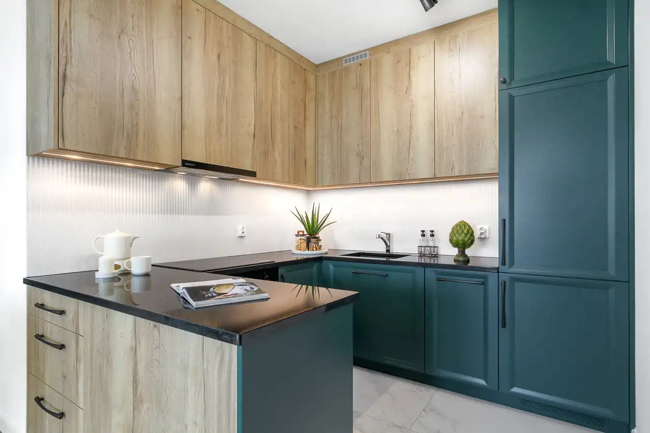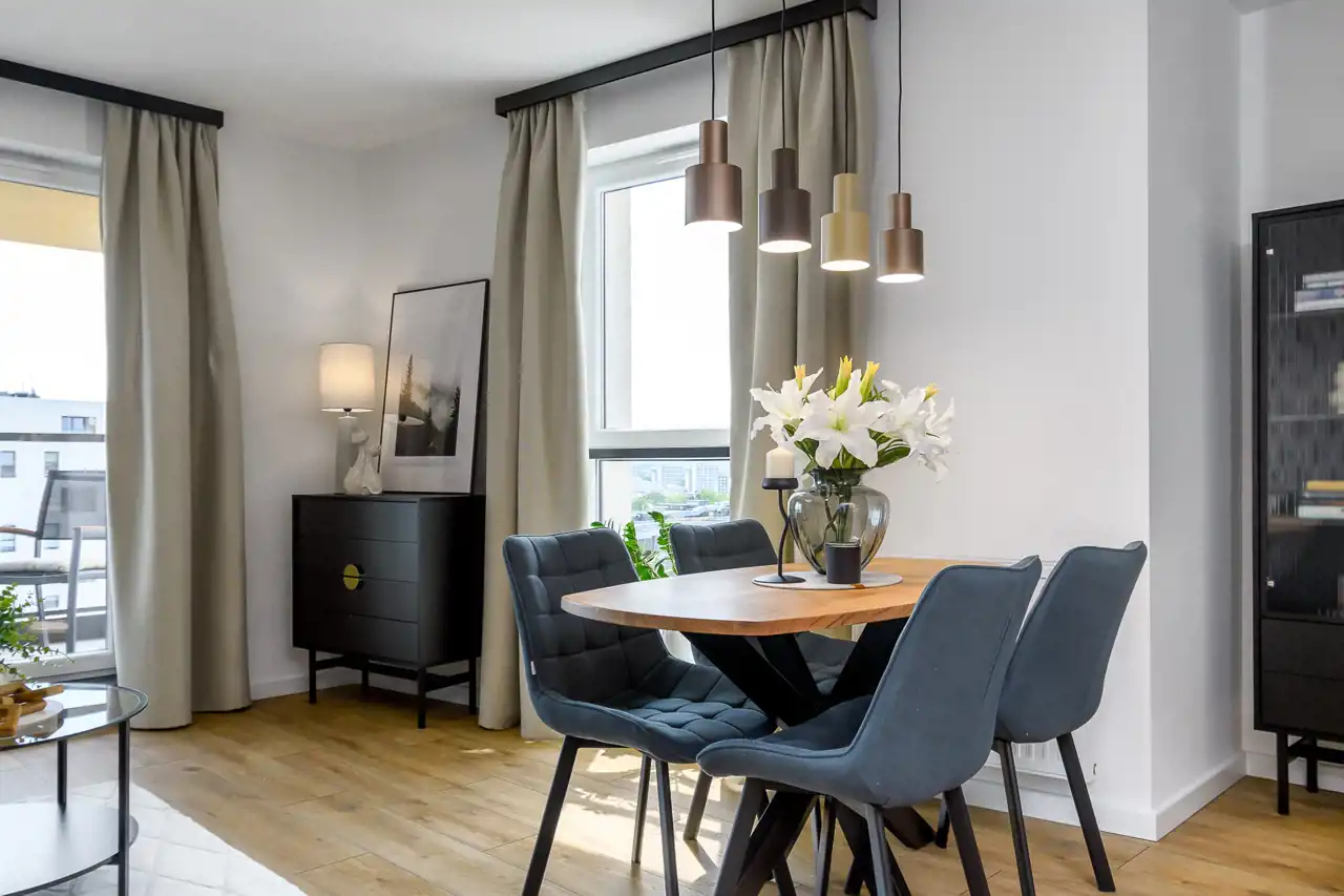 Mieszkanie zostało wykończone w wysokim standardzie, przy użyciu materiałów renomowanych producentów. Całość utrzymana w nowoczesnym stylu, z dbałością o każdy detal – gotowe do zamieszkania, bez potrzeby dodatkowych nakładów finansowych.