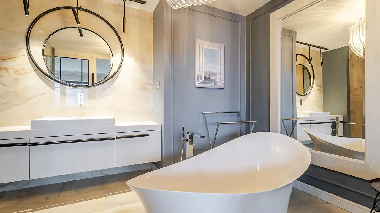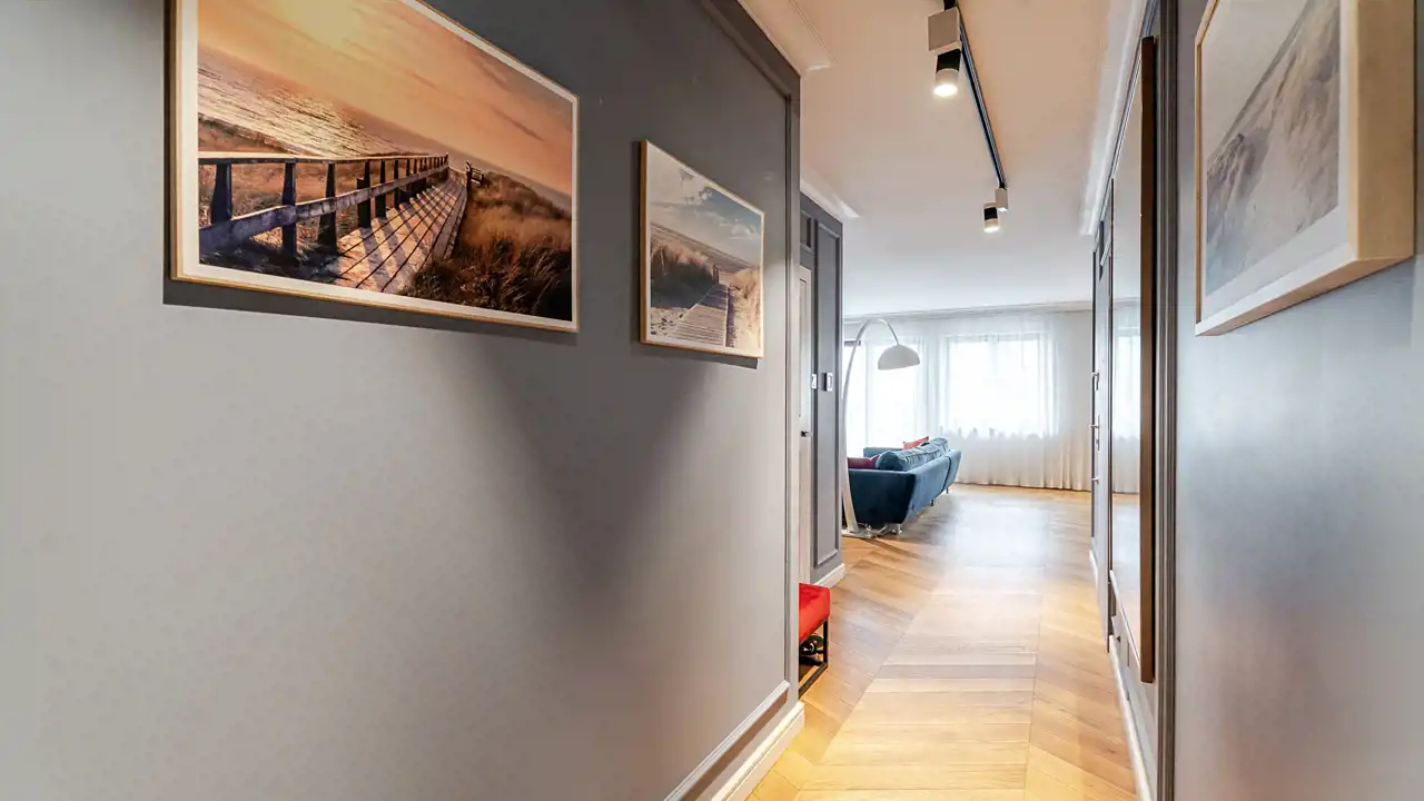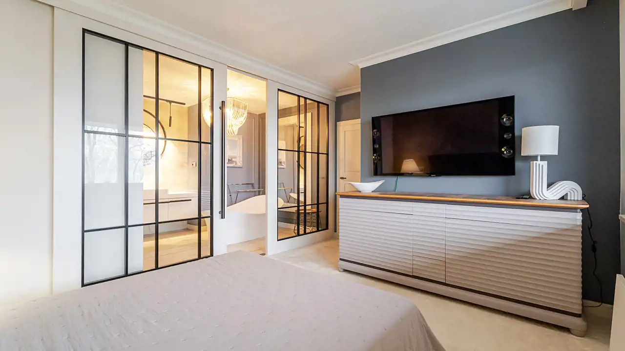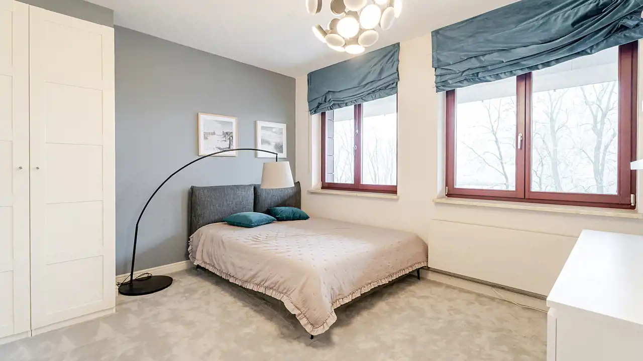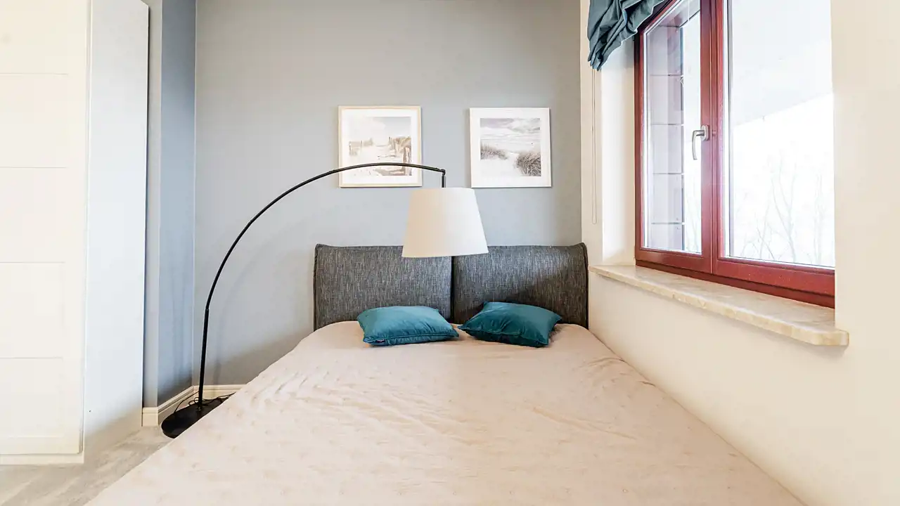 Apartament jest jasny, przestronny i zaprojektowany z myślą o najwyższym komforcie. Składa się z dwóch sypialni, dwóch łazienek (w tym jednej pełniącej funkcję eleganckiego pokoju kąpielowego), przestronnego salonu z aneksem kuchennym oraz pojemnej garderoby. Funkcjonalny układ zapewnia wygodę zarówno do codziennego życia, jak i odpoczynku.
