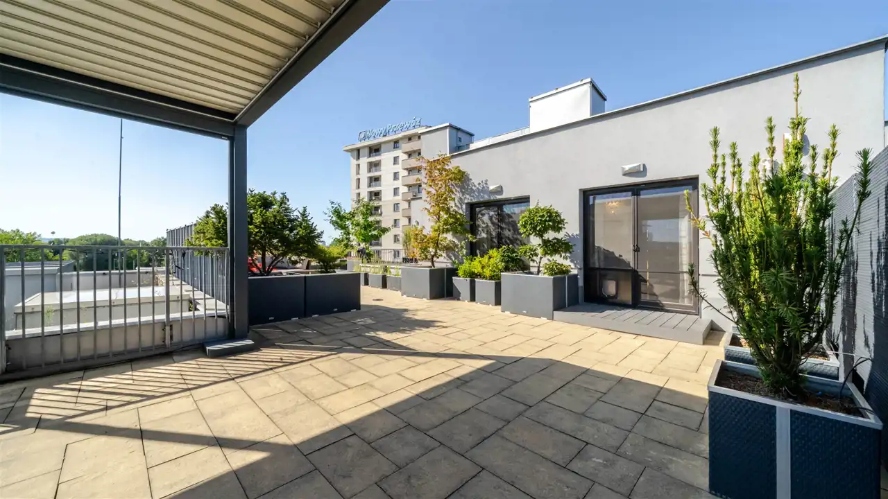 - w pełni zagospodarowany taras z panoramicznym widokiem na Kraków