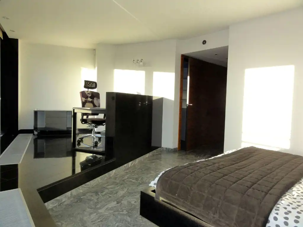 - głównej sypialni z częścią gabinetową, garderobą oraz łazienką,