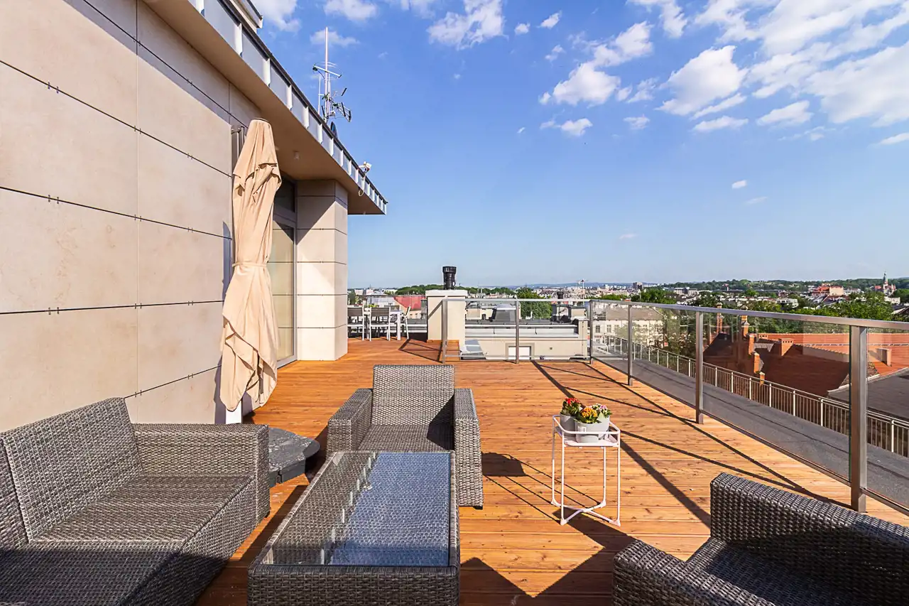 taras widokowy (ok. 60 m²) z panoramicznym widokiem na Kraków