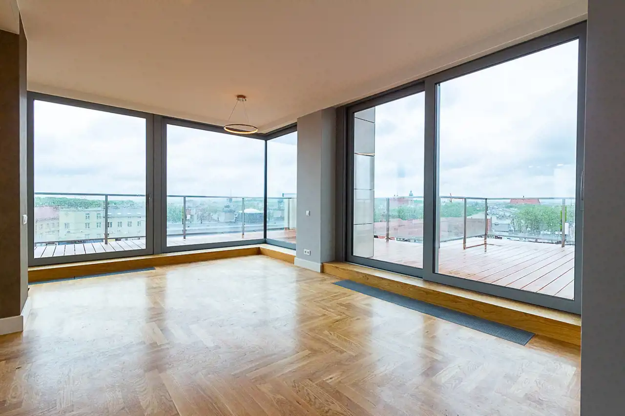 Premium Estates prezentuje wyjątkowy, dwupoziomowy penthouse z panoramicznym tarasem (ok. 60 m²) w prestiżowej inwestycji Sarego Rezydencja w sercu Krakowa.