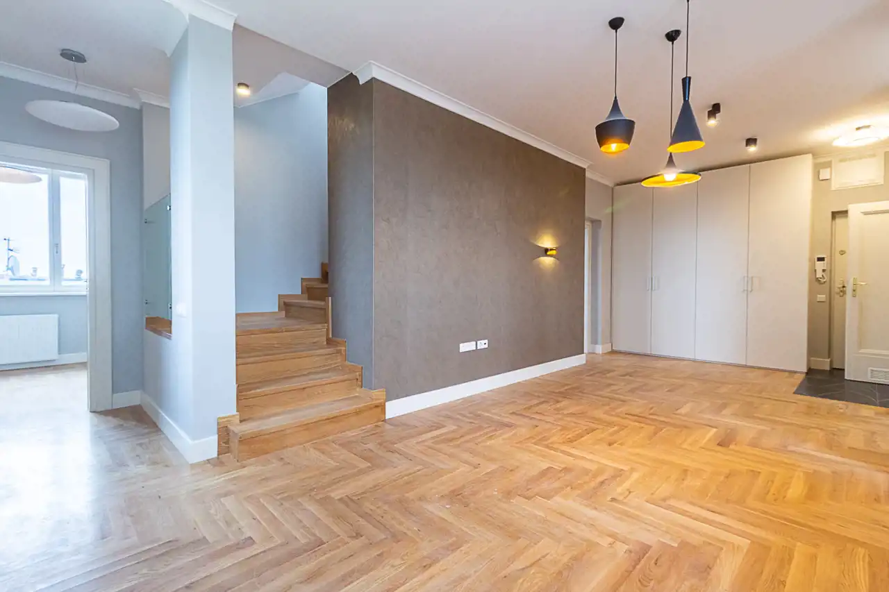 Apartament znajduje się na 6. i 7. piętrze odrestaurowanej kamienicy z windą, wchodzącej w skład ekskluzywnego kompleksu Sarego Rezydencja.